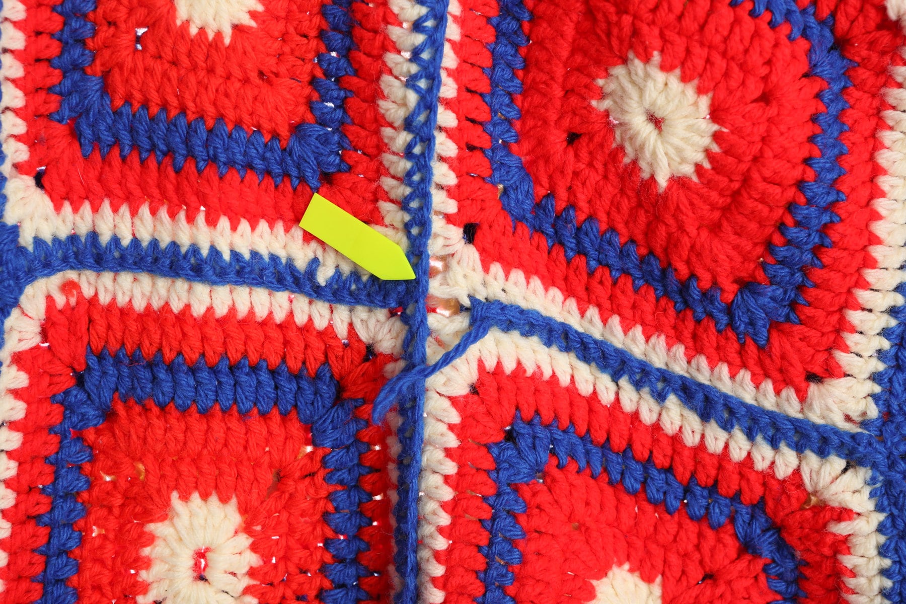 Patchwork Hand Knit Red Blue and White Acrylic Crochet Jacket