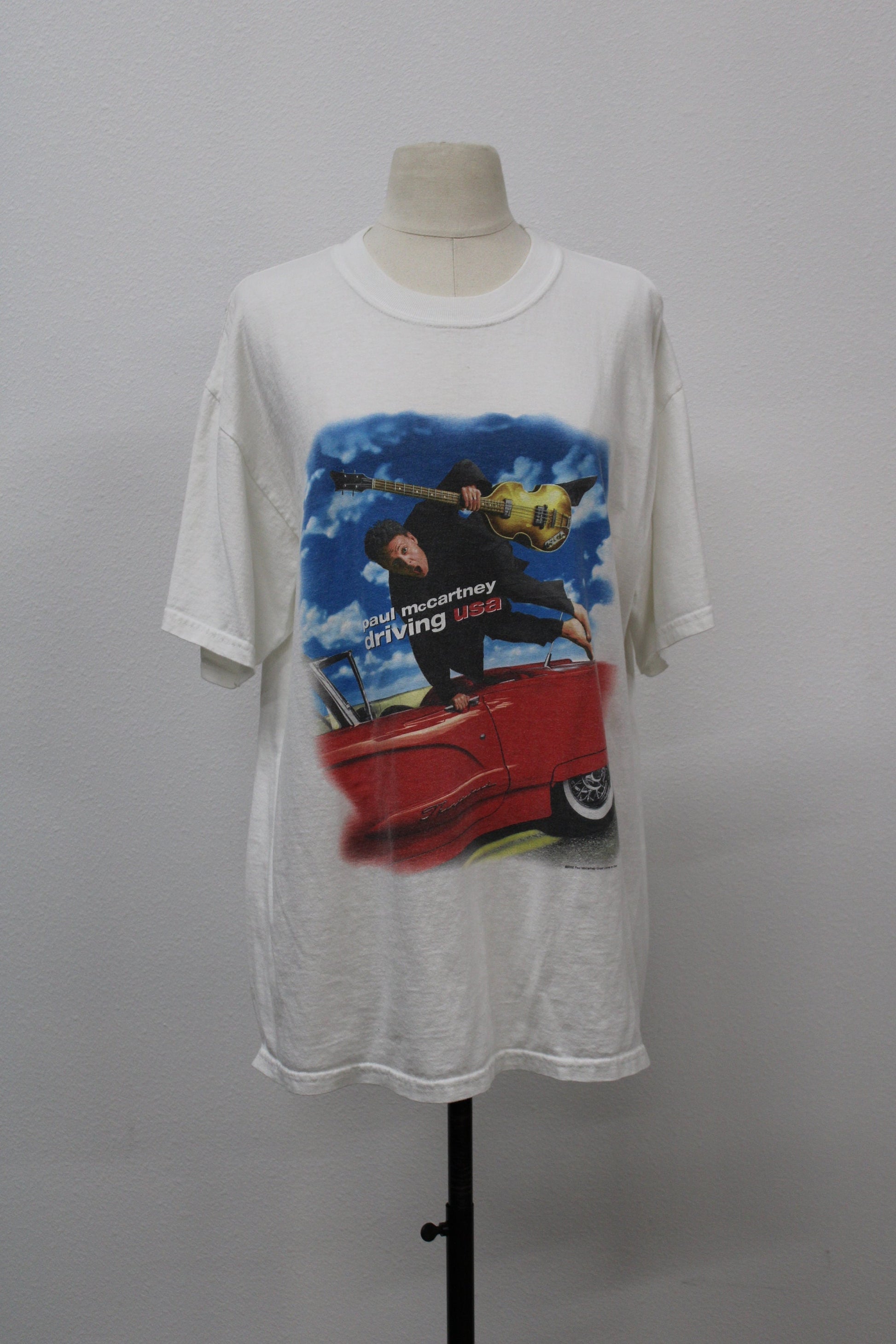 Paul mccartney 2002 tour t-shirt white driving usa concert beatles thunderbird red guitar music