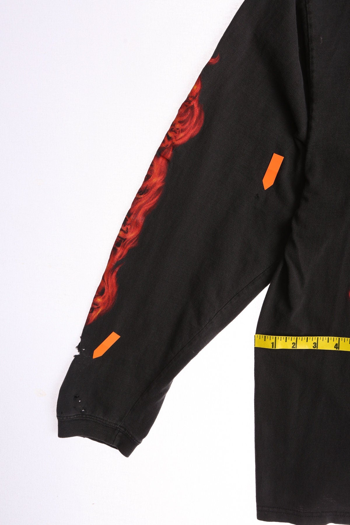 Silver Skull in Flames Long Sleeve Black Graphic Shirt