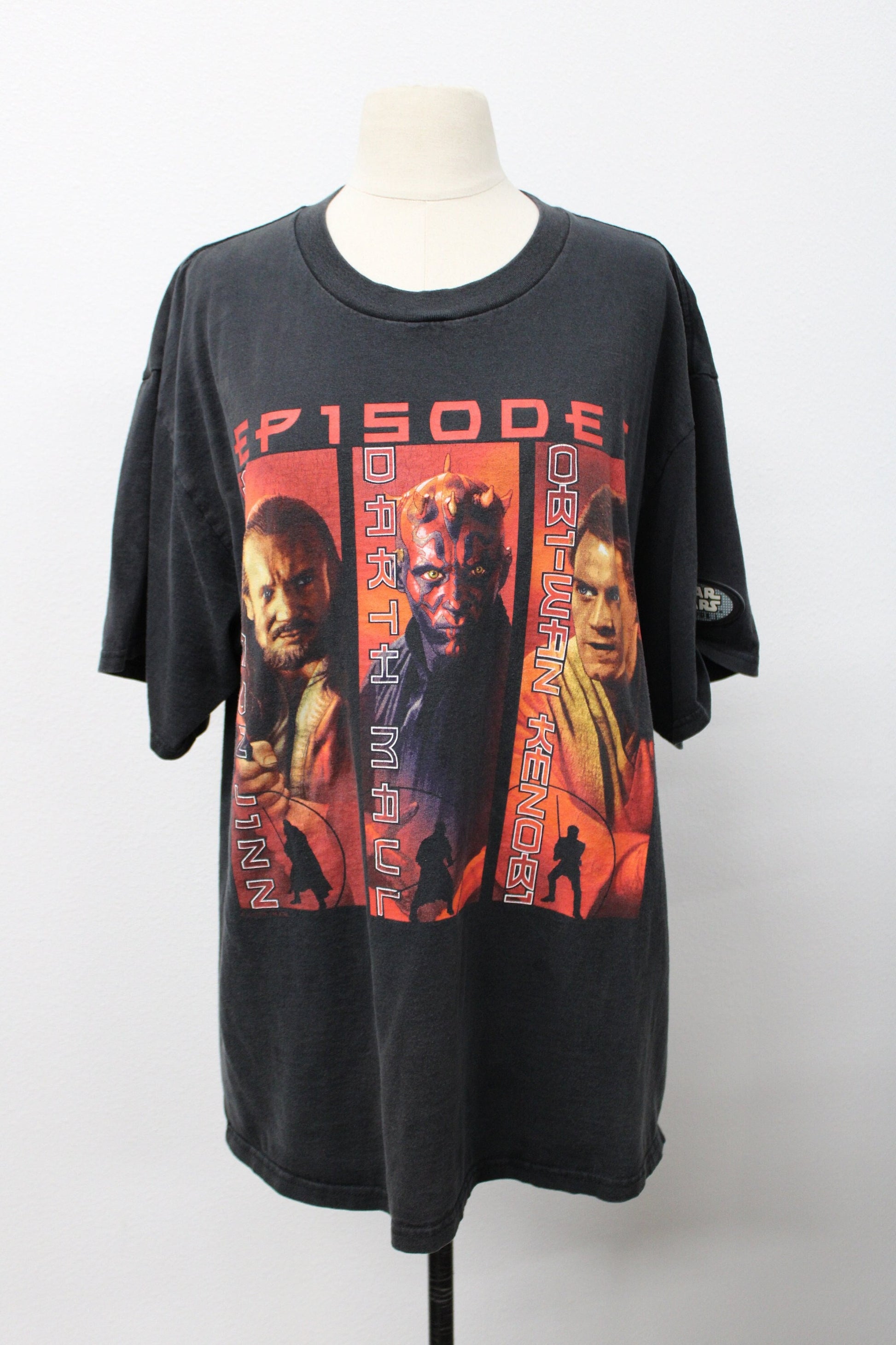 Start wars episode one vintage t-shirt rare black xl obi wan kenobi darth maul qui-gon jinn