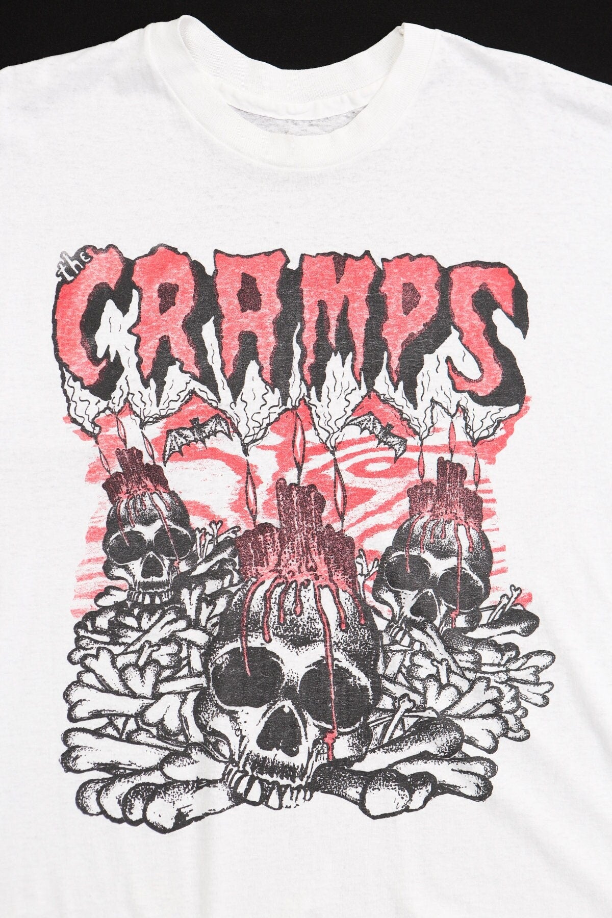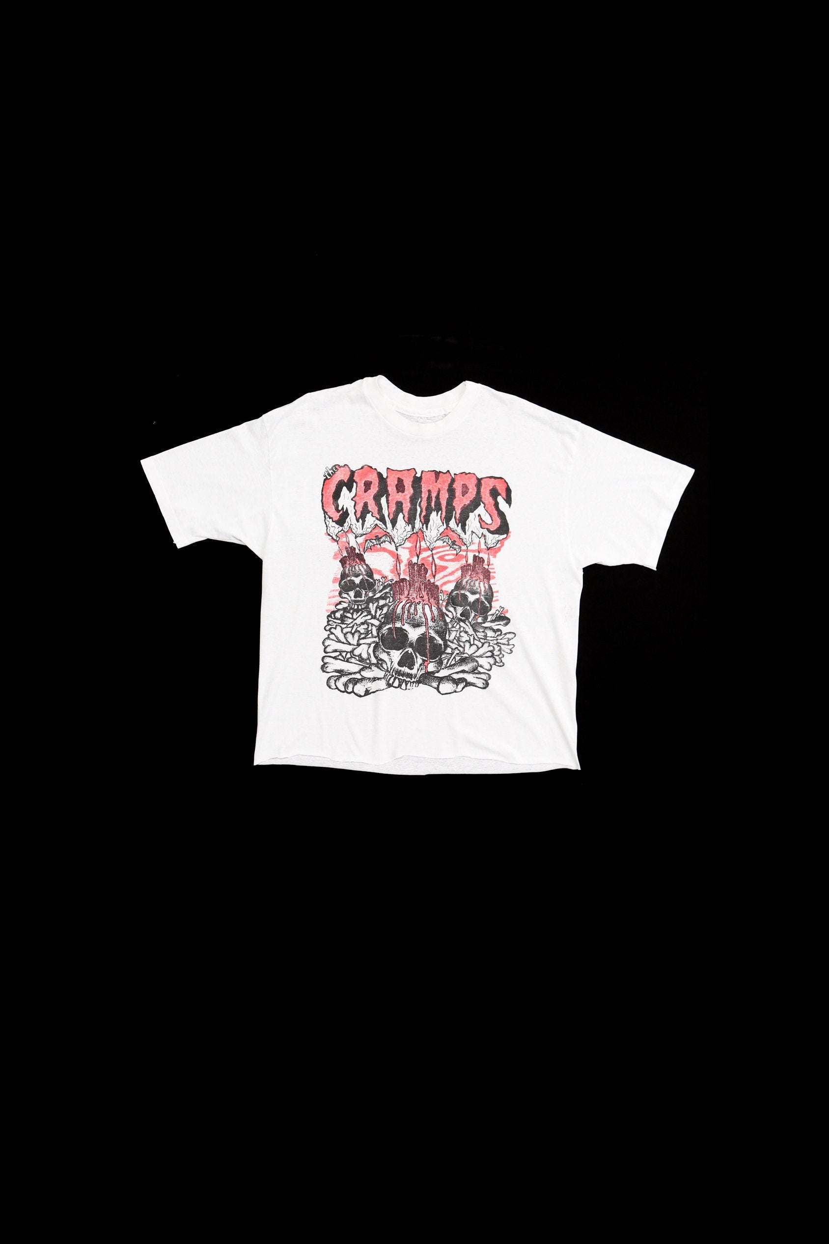 The cramps punk rock whiet t-shirt skulls bones 80's rock shirt band concert rare