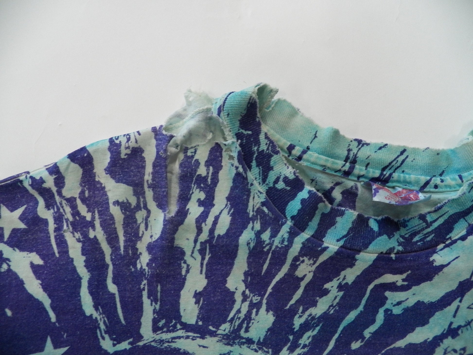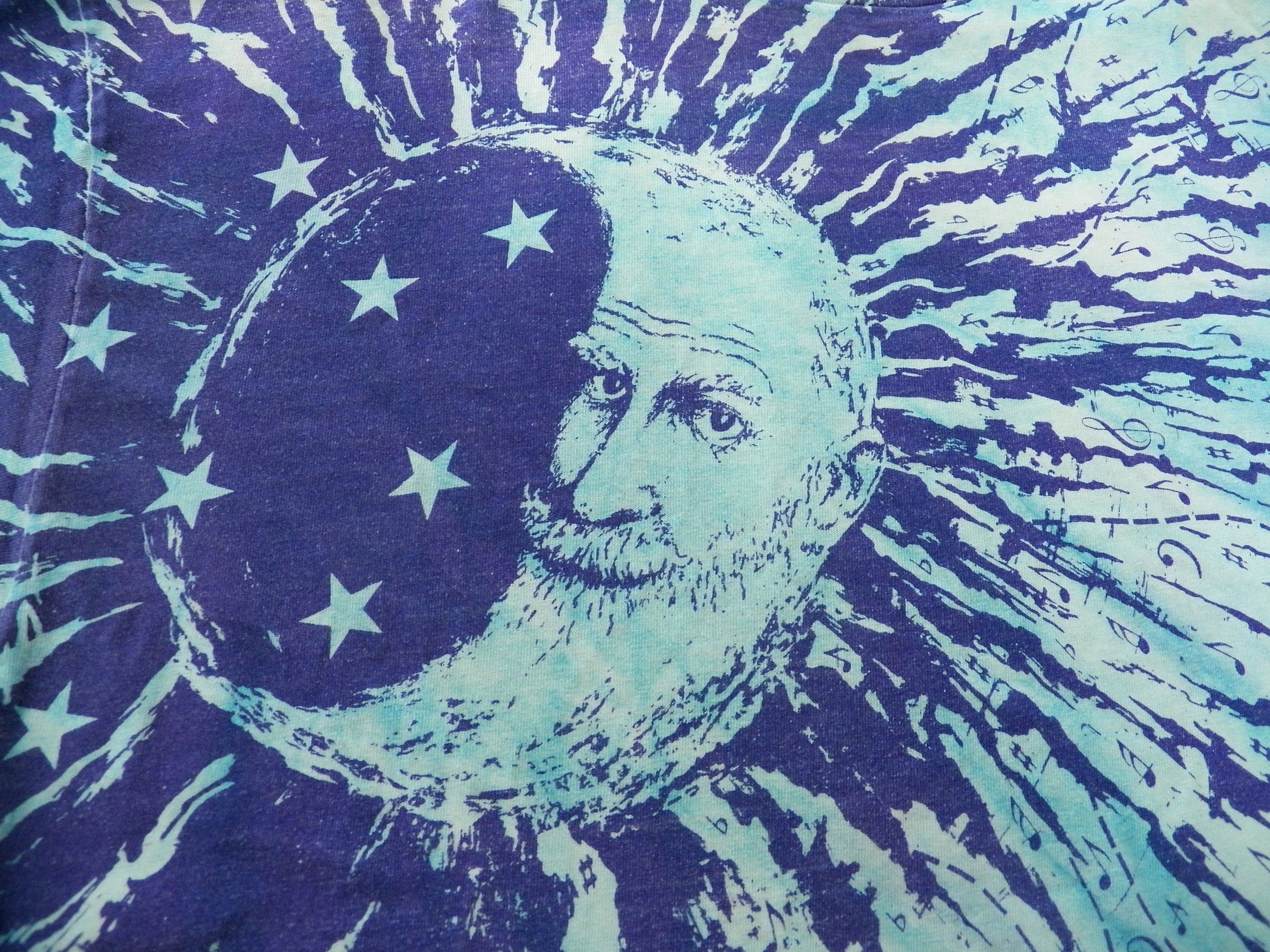 Tie dye distressed music t-shirt blue white navy blue moon stars 1993 sneaky tees the festival at sandpoint