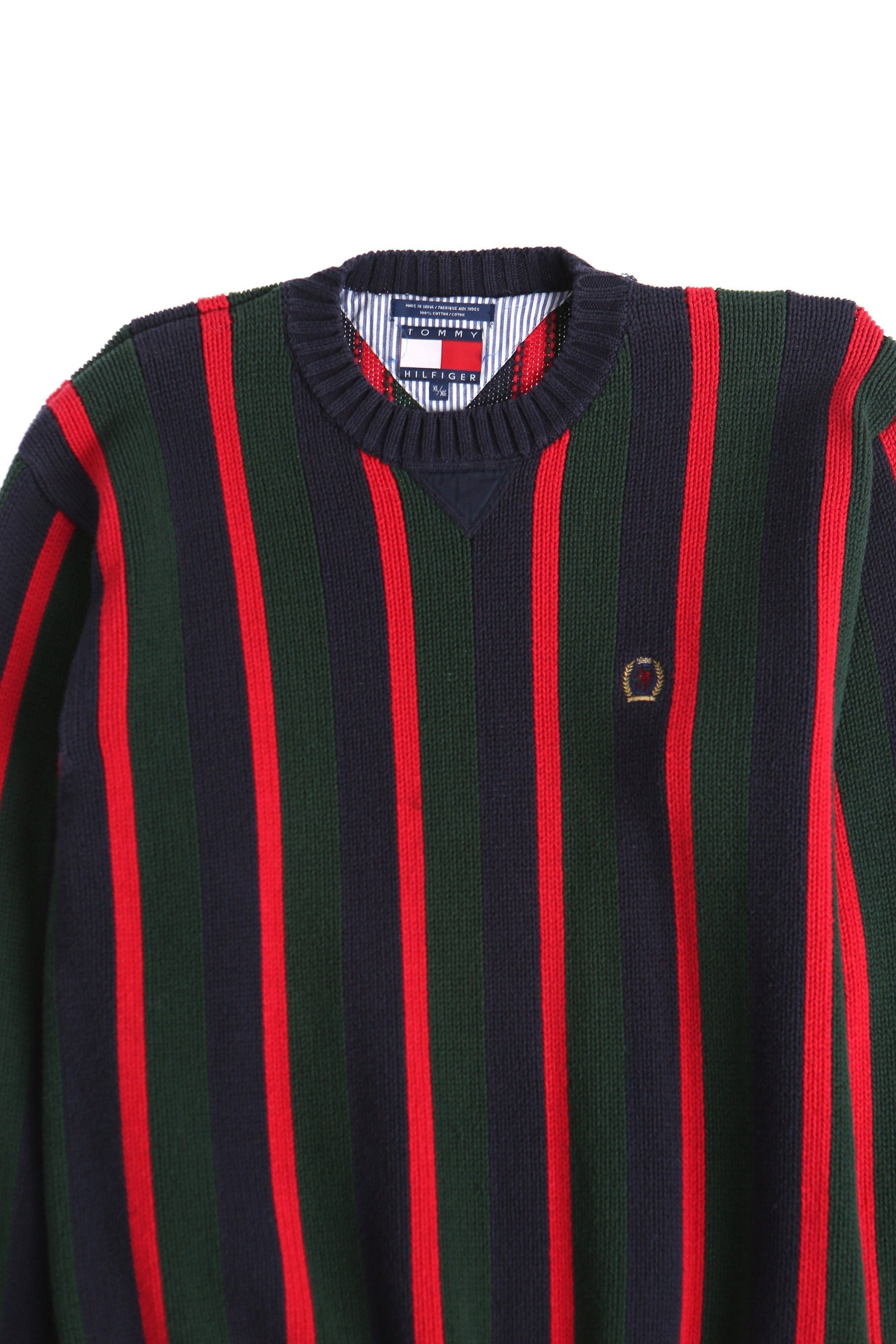 Tommy hilfiger crew neck sweater striped green blue red xl men