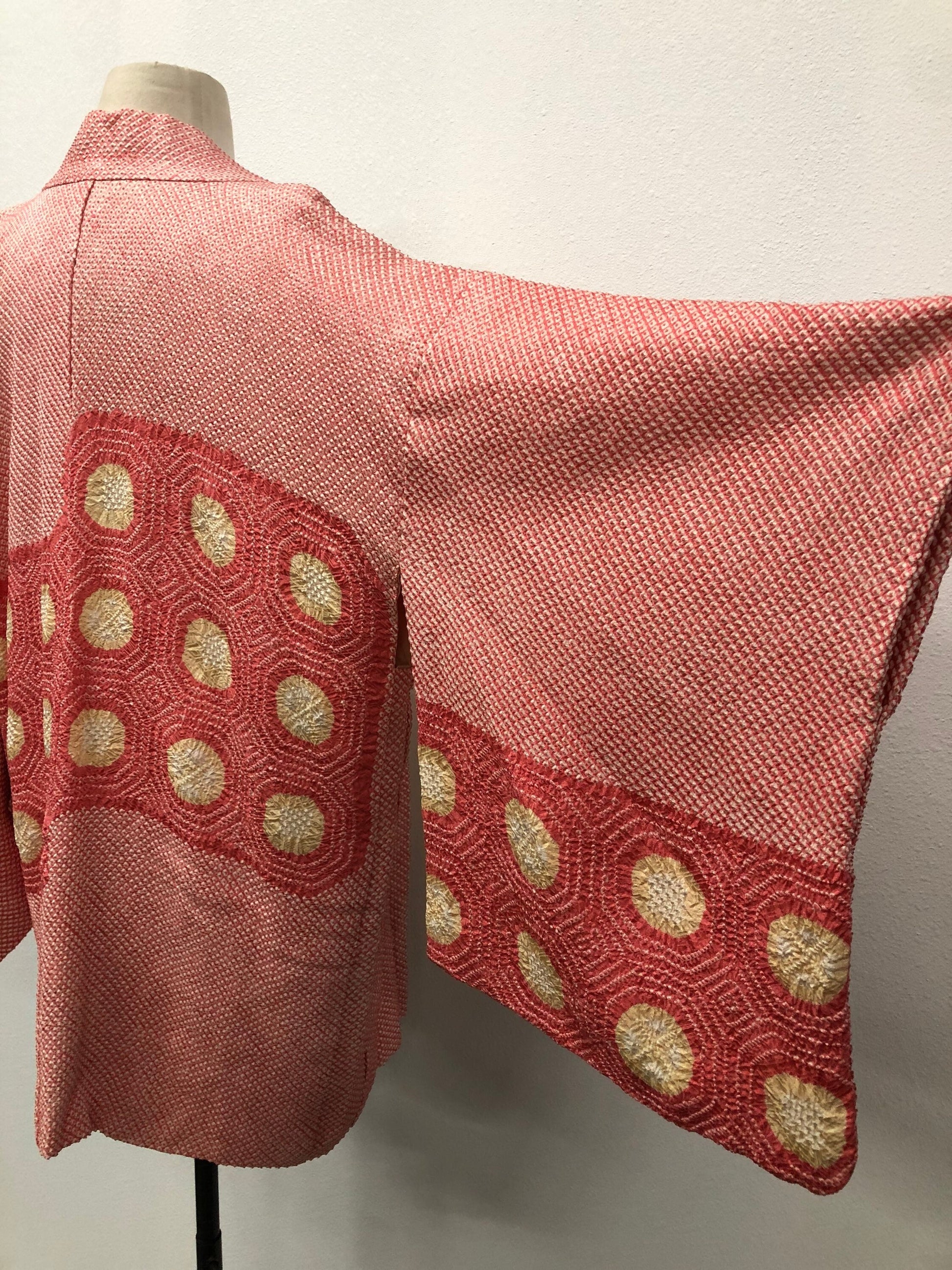 Unisex graphic print indoor wear casual japanese beige lining red jacket kimono
