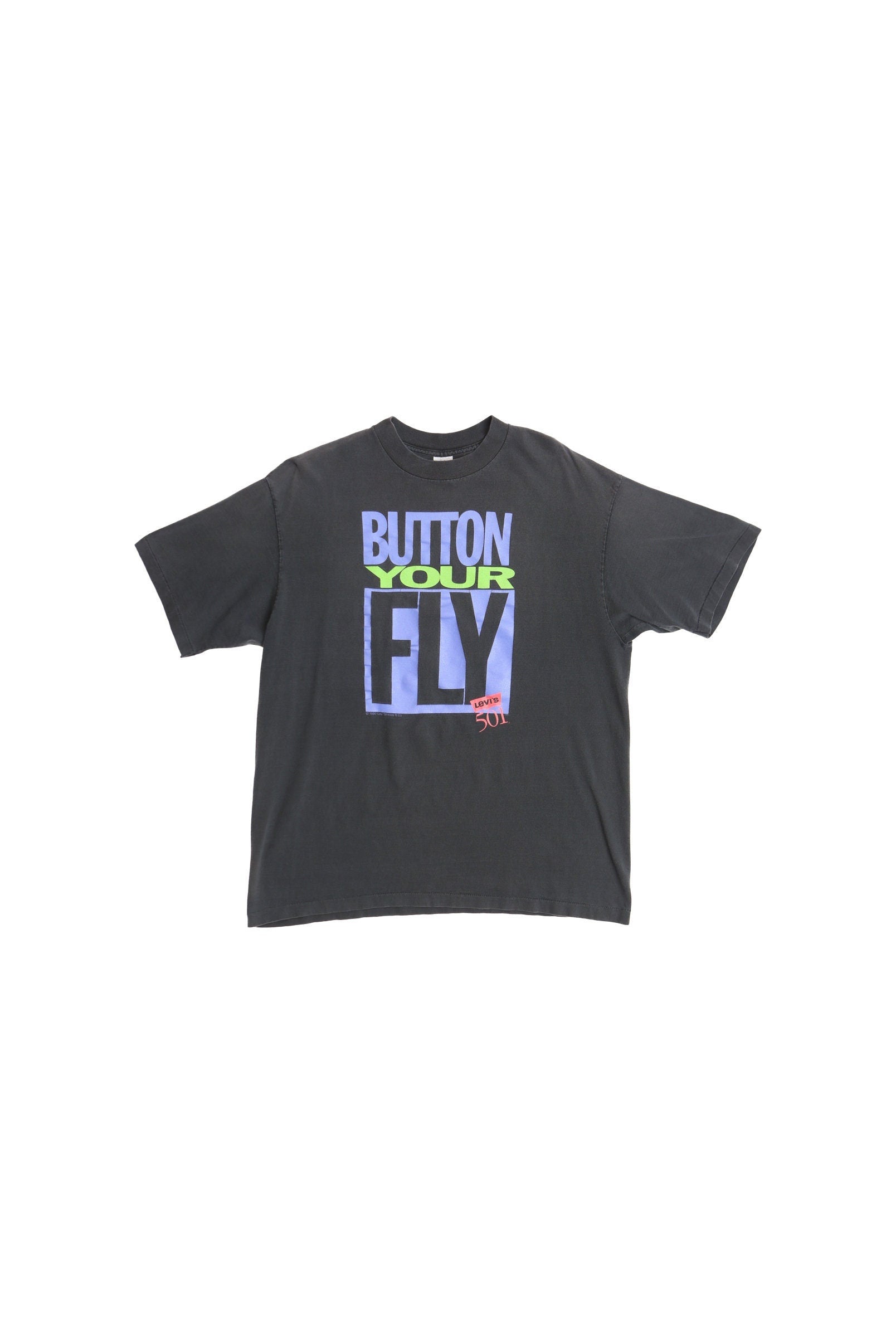 Vintage 501 levi's button fly graphic shirt t-shirt black 90's xl made in usa