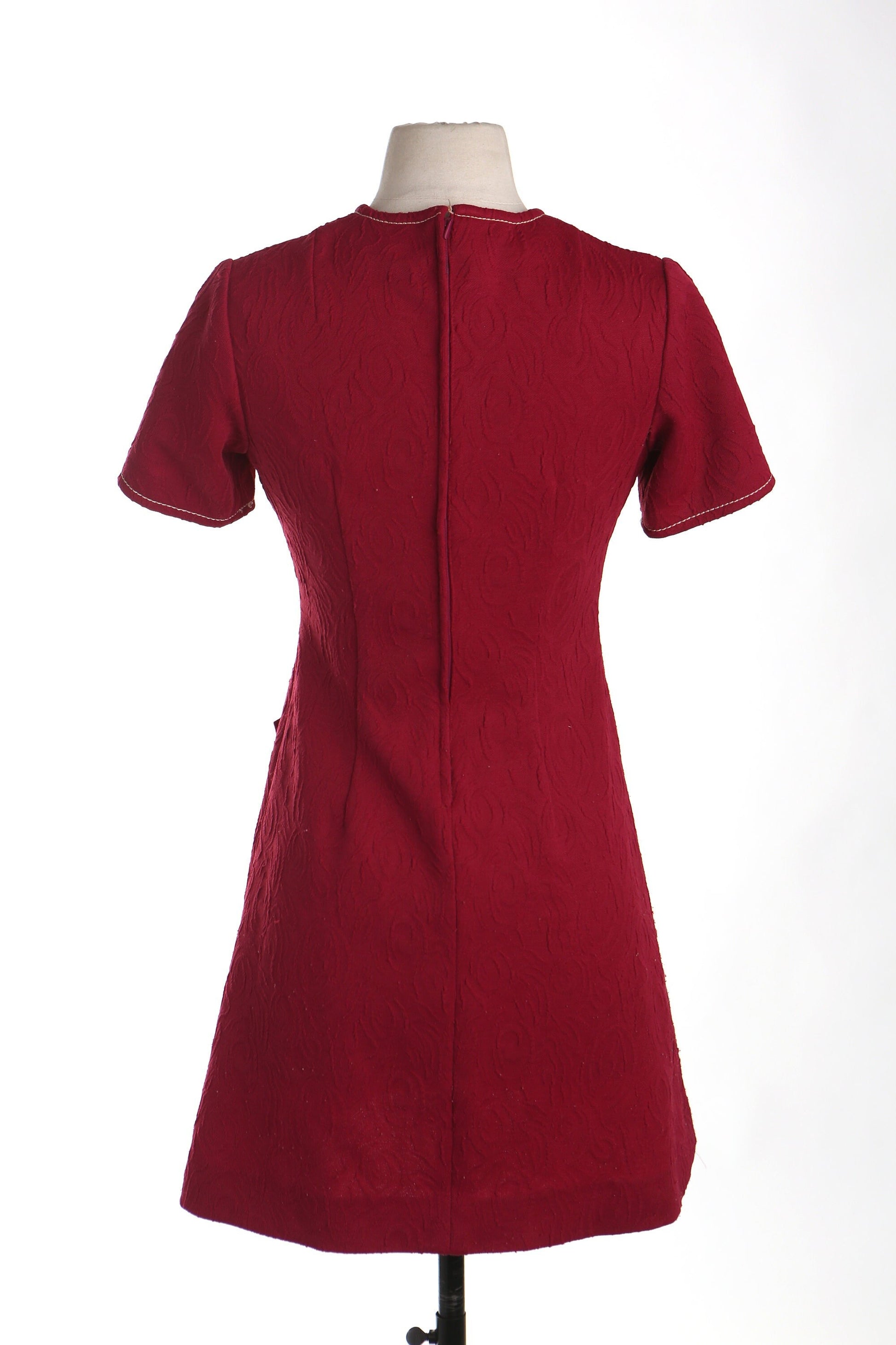 Vintage 70's burgundy mod casual women dress button up