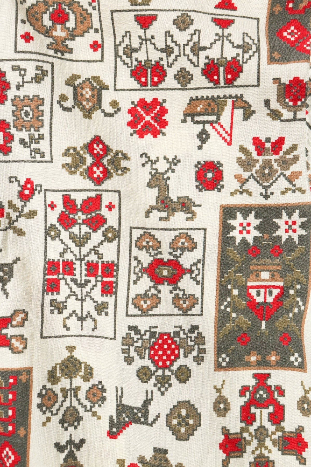 Vintage 70's cotton beige hippie top blouse women button geometric print animal bird