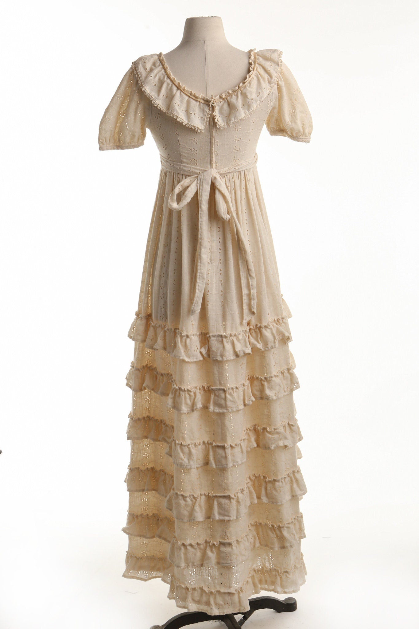 Vintage 70's long victorian americana hipppie boho dress beige ruffled