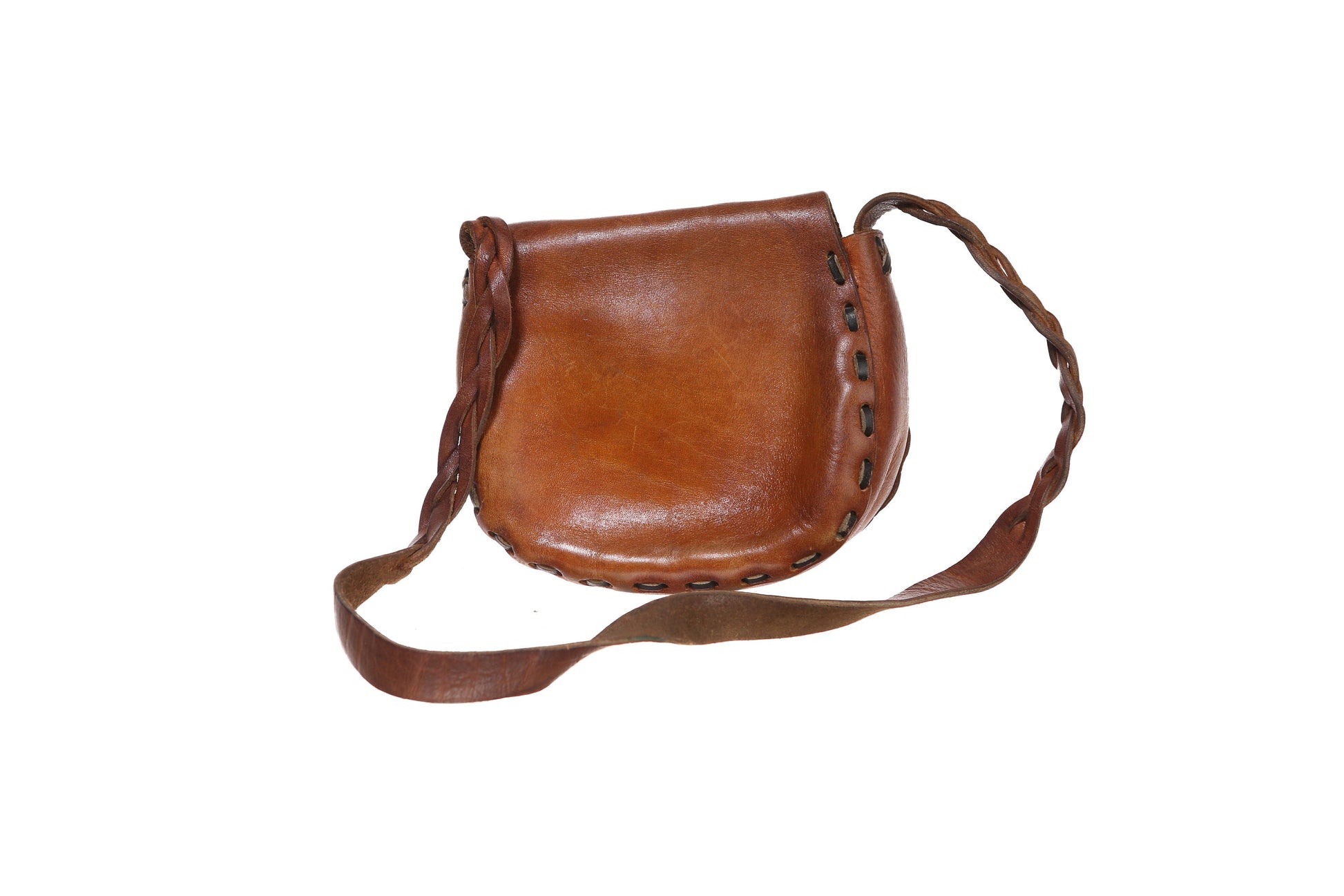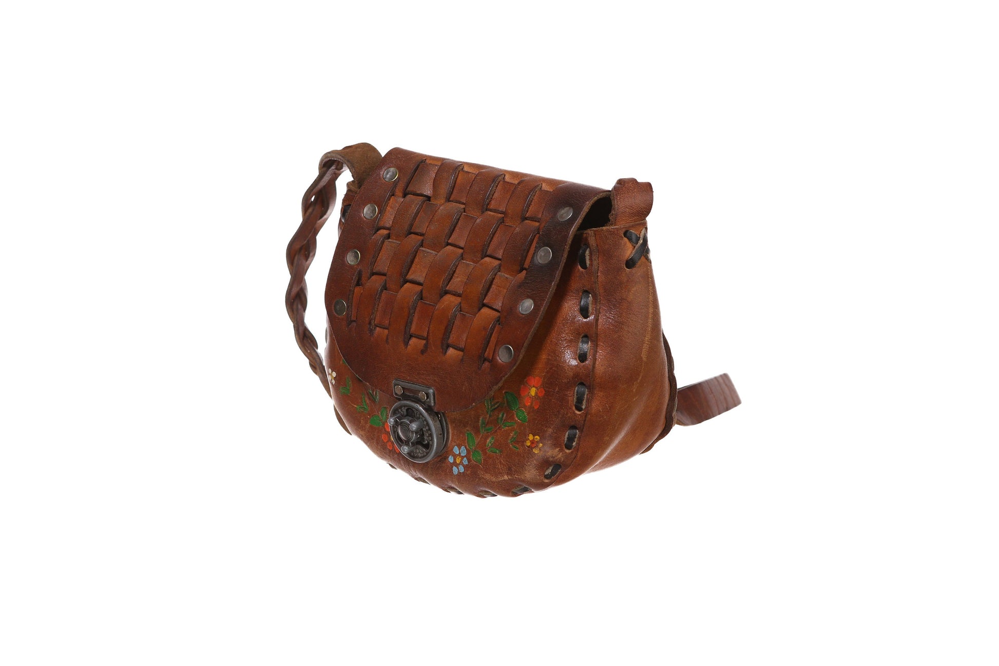 Vintage 70s Tooled Leather Bag with Floral Designs
