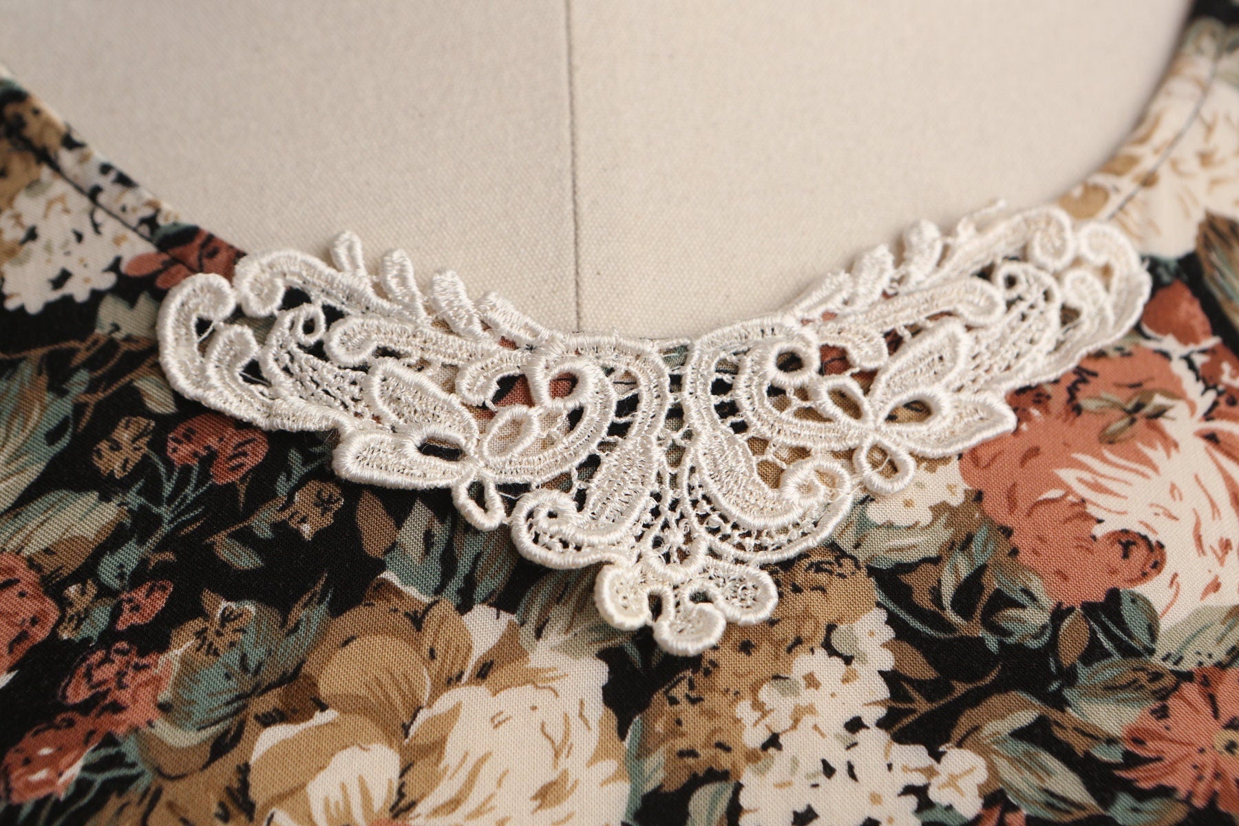 Vintage 90's floral summer dress print rayon women lace