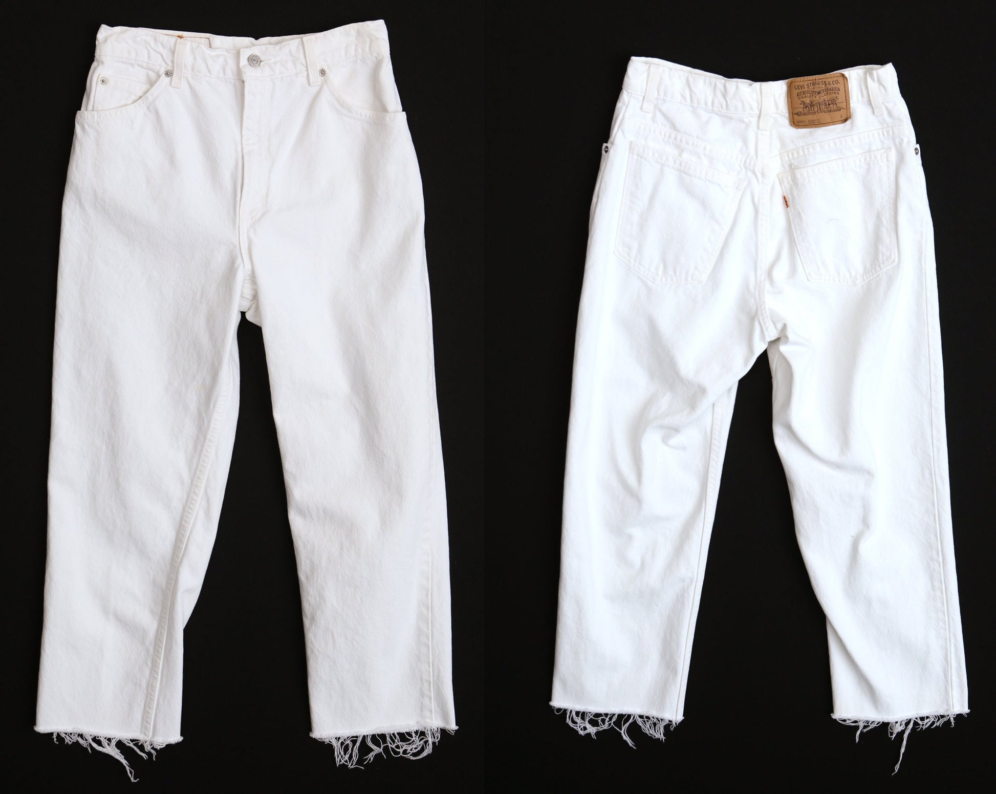 Vintage 951 Levi's white denim pants / jeans high waist / women 90's cut off relaxed fit jeans