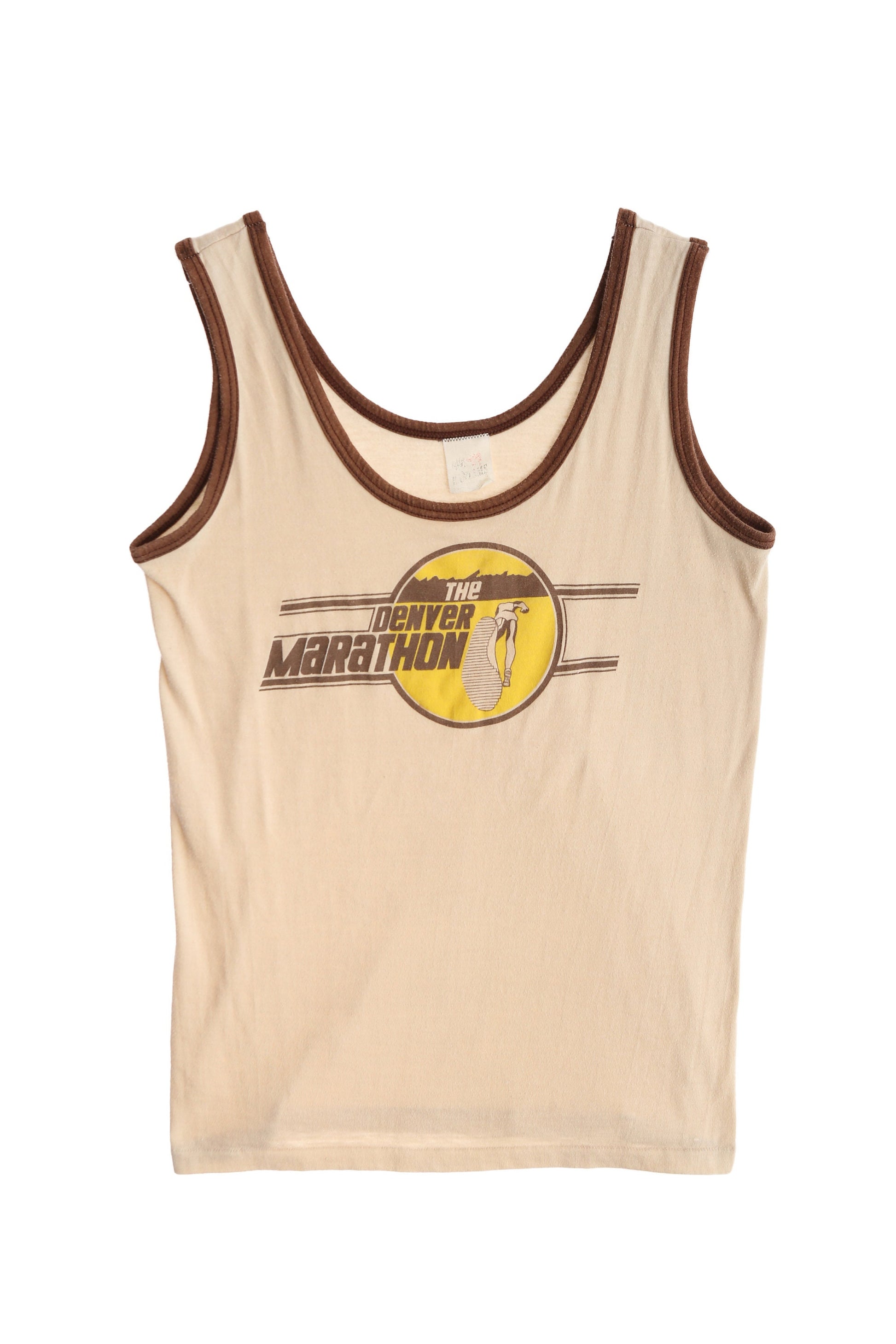 Vintage Beige Tank Top with The Denver Marathon Print / Era: 70s -80s