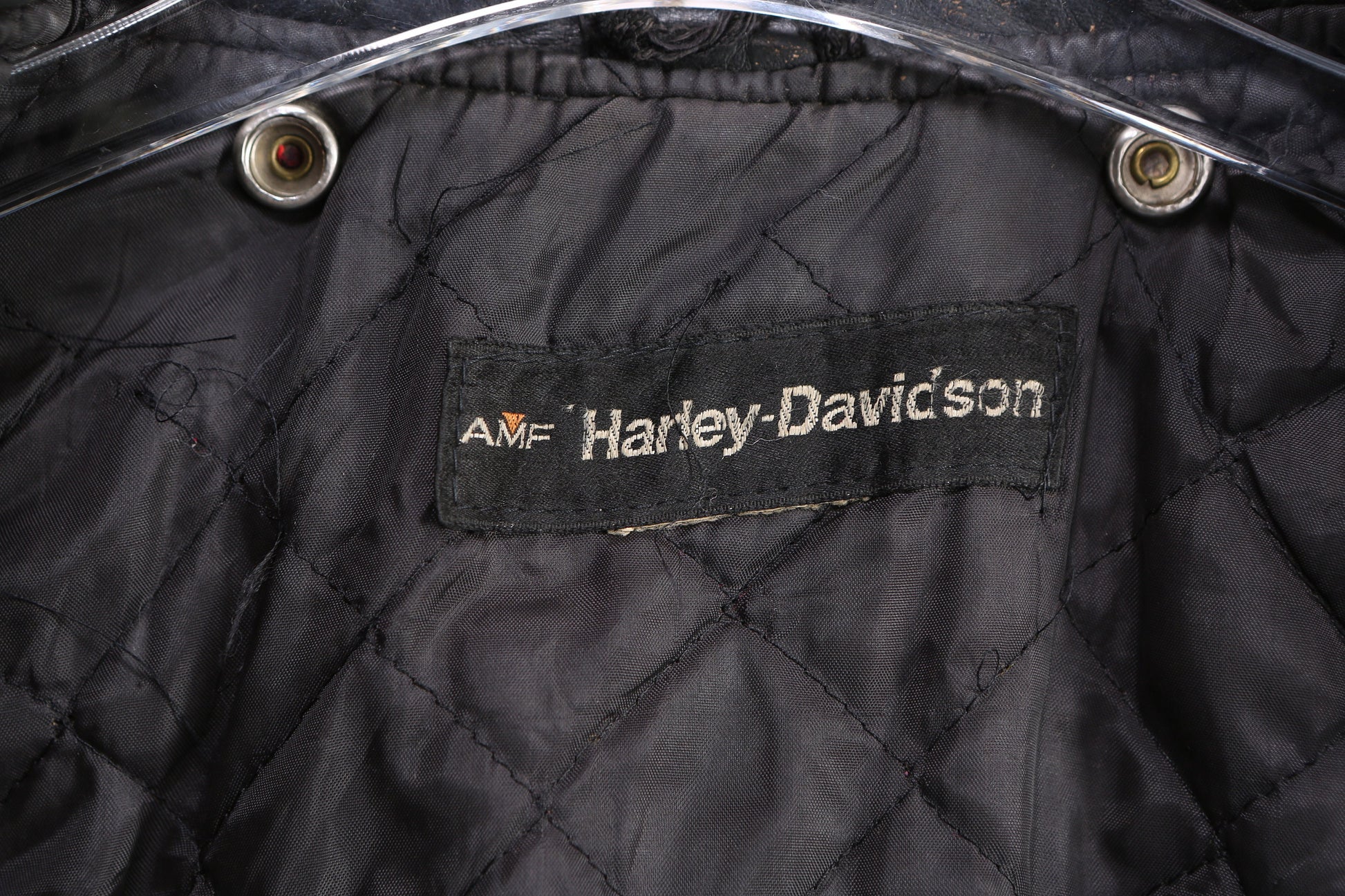 Vintage Black Biker Leather Jacket by Harley Davidson - Estimated Era 1970's - 1980's