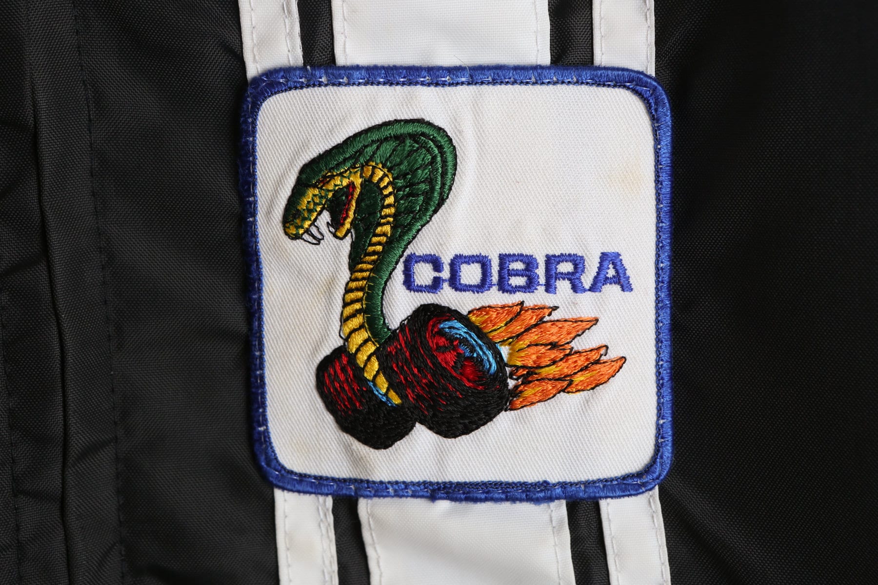 Vintage Black Nylon Racing Jacket with Cobra and USA Flag Patch