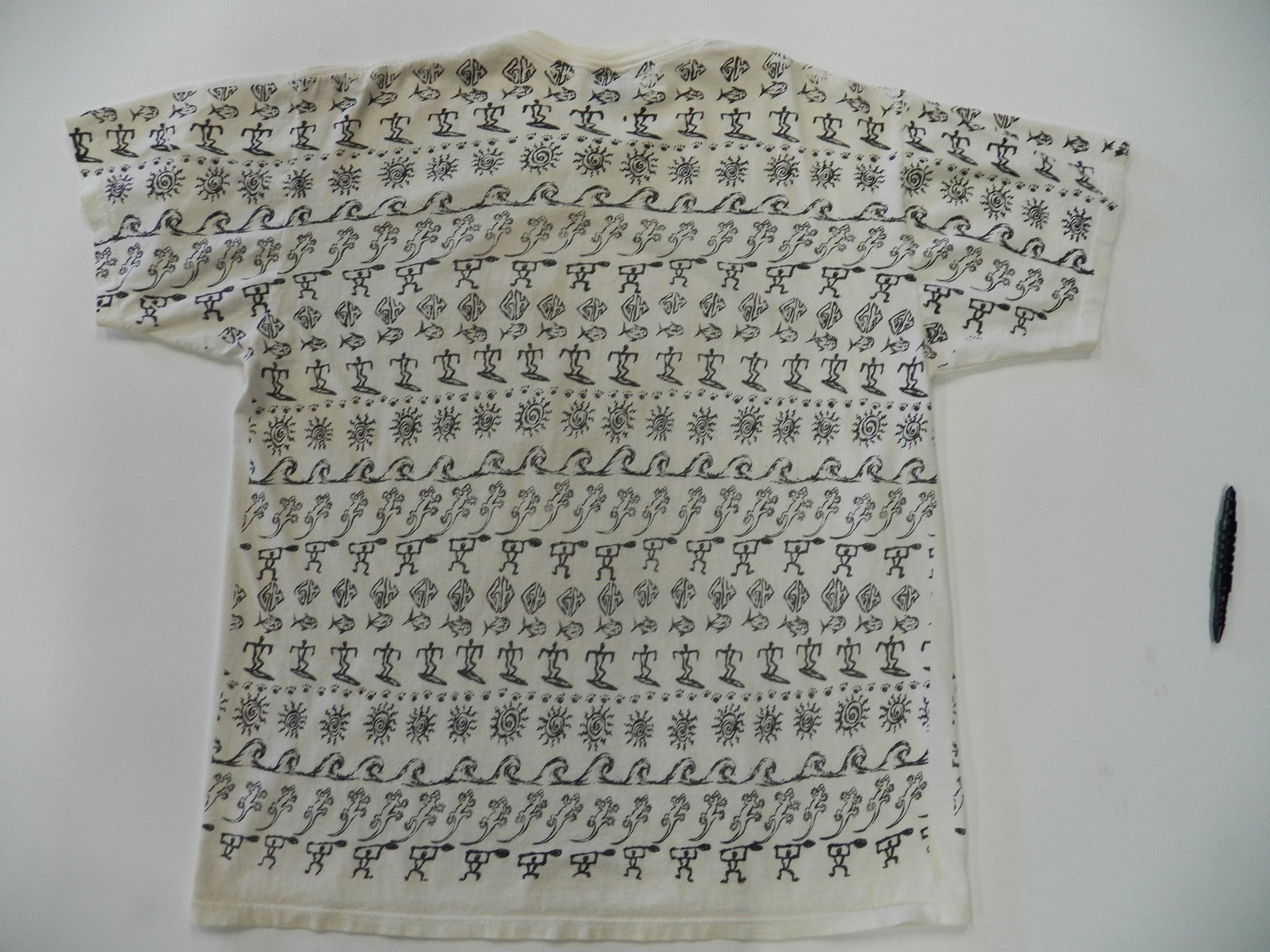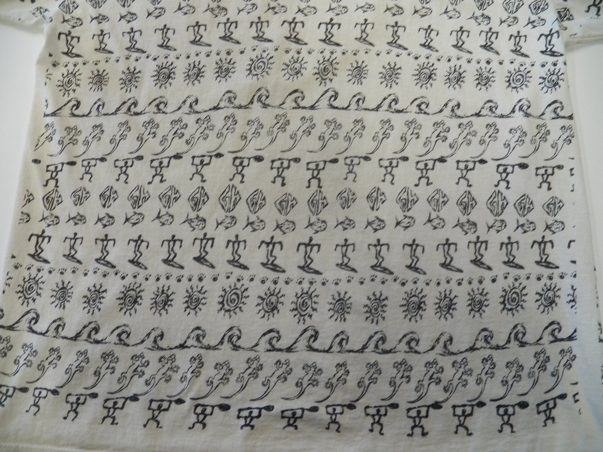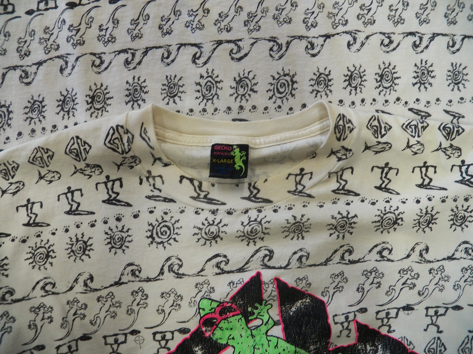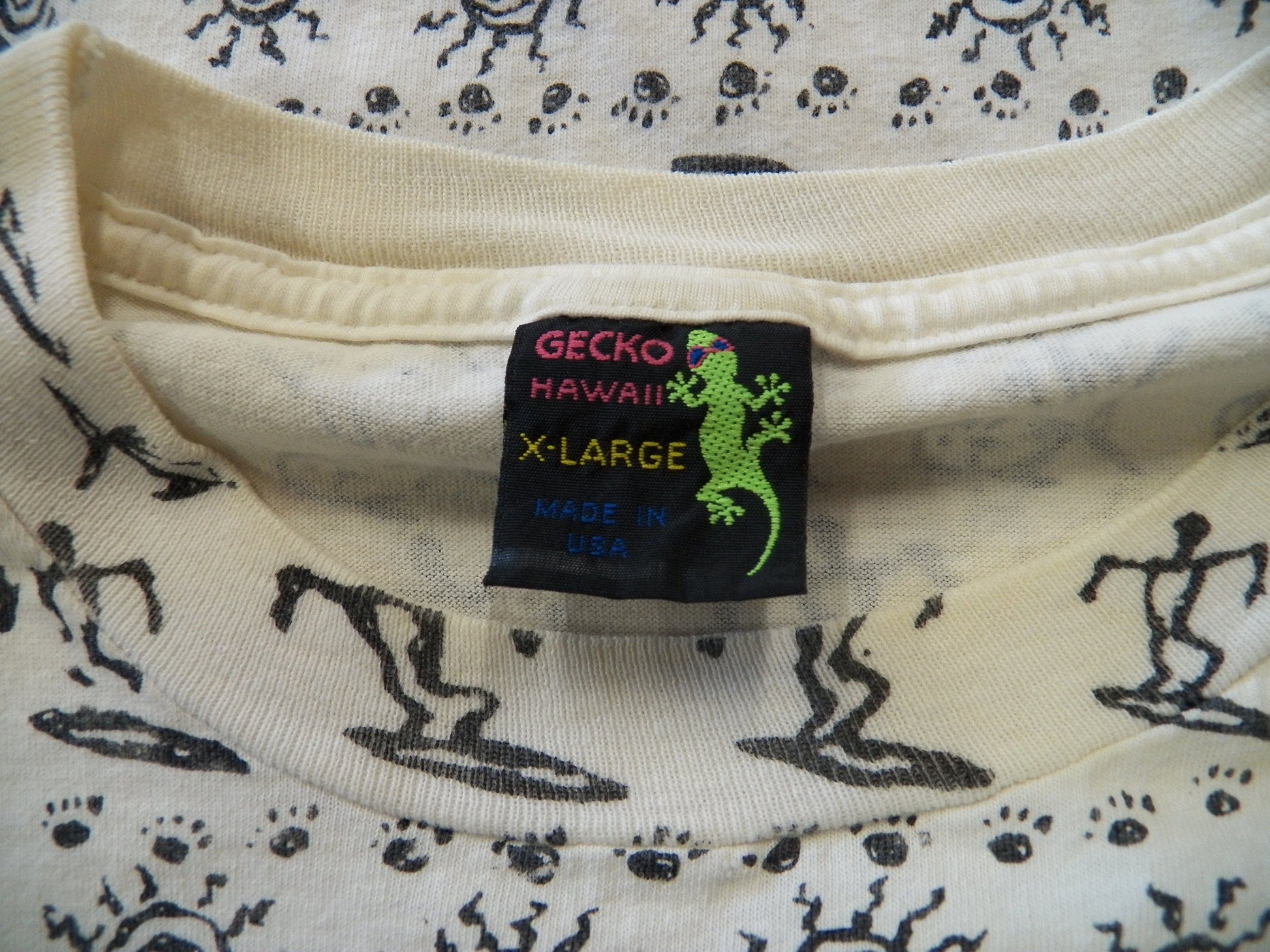 Vintage block print t-shirt cotton gecko surfing graphics