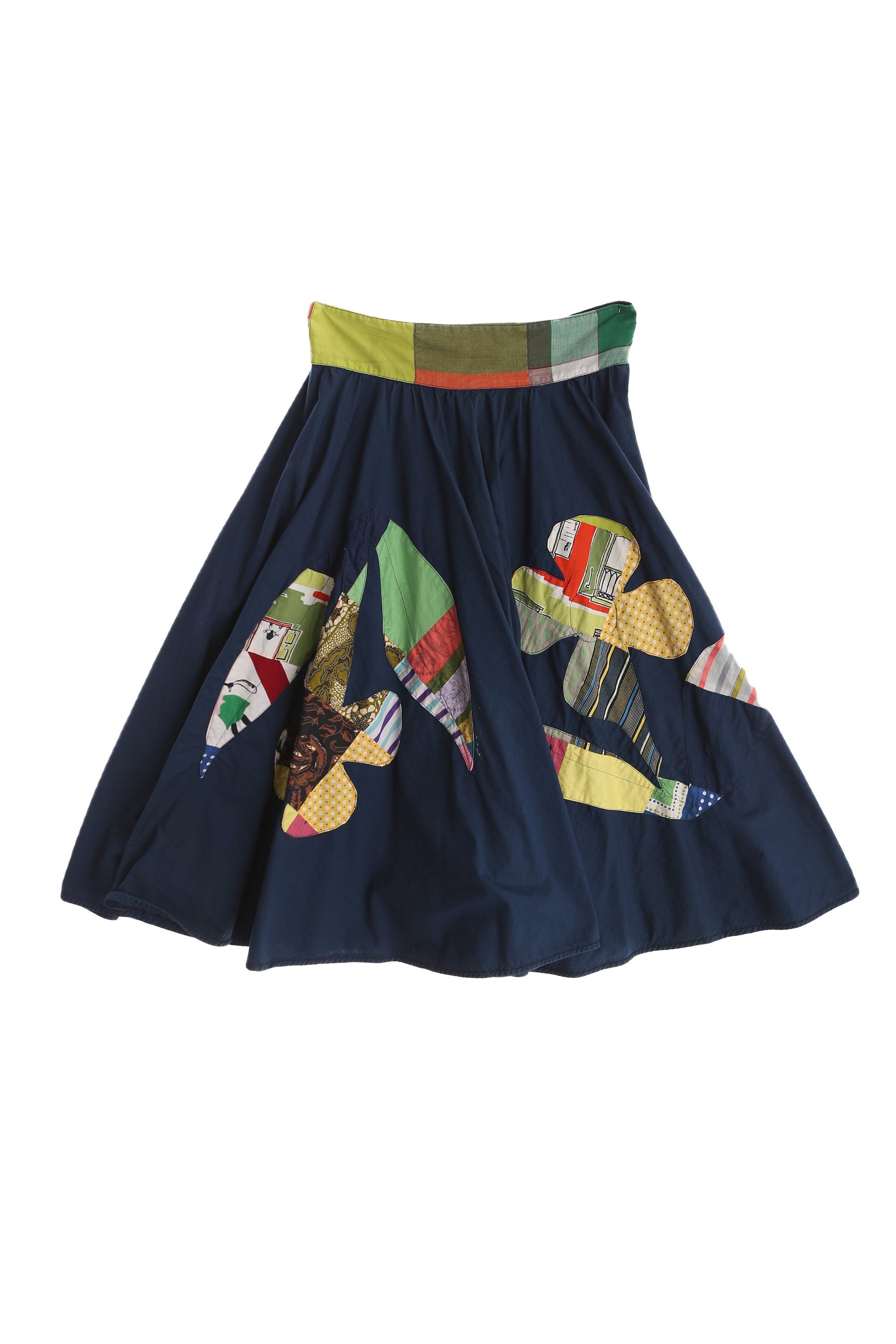 Vintage Blue Floral Patchwork Skirt / Era 1960's - 1970's