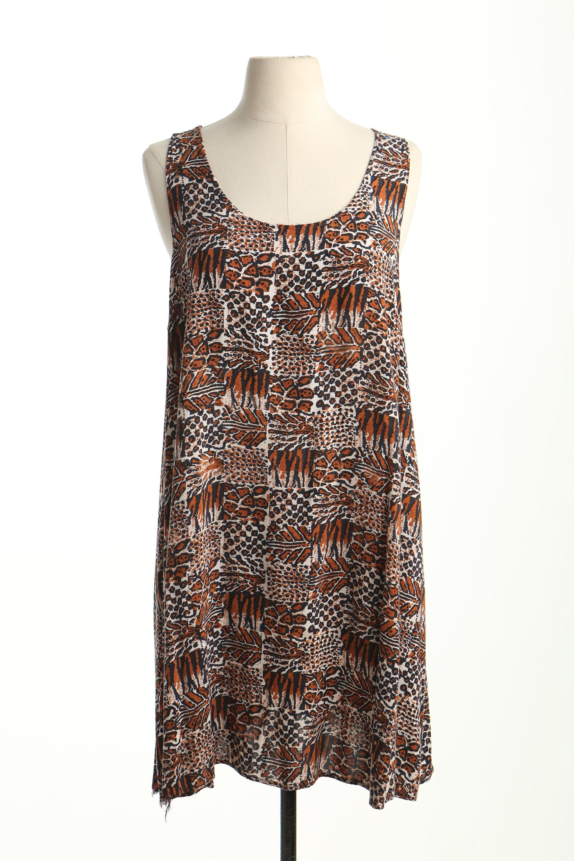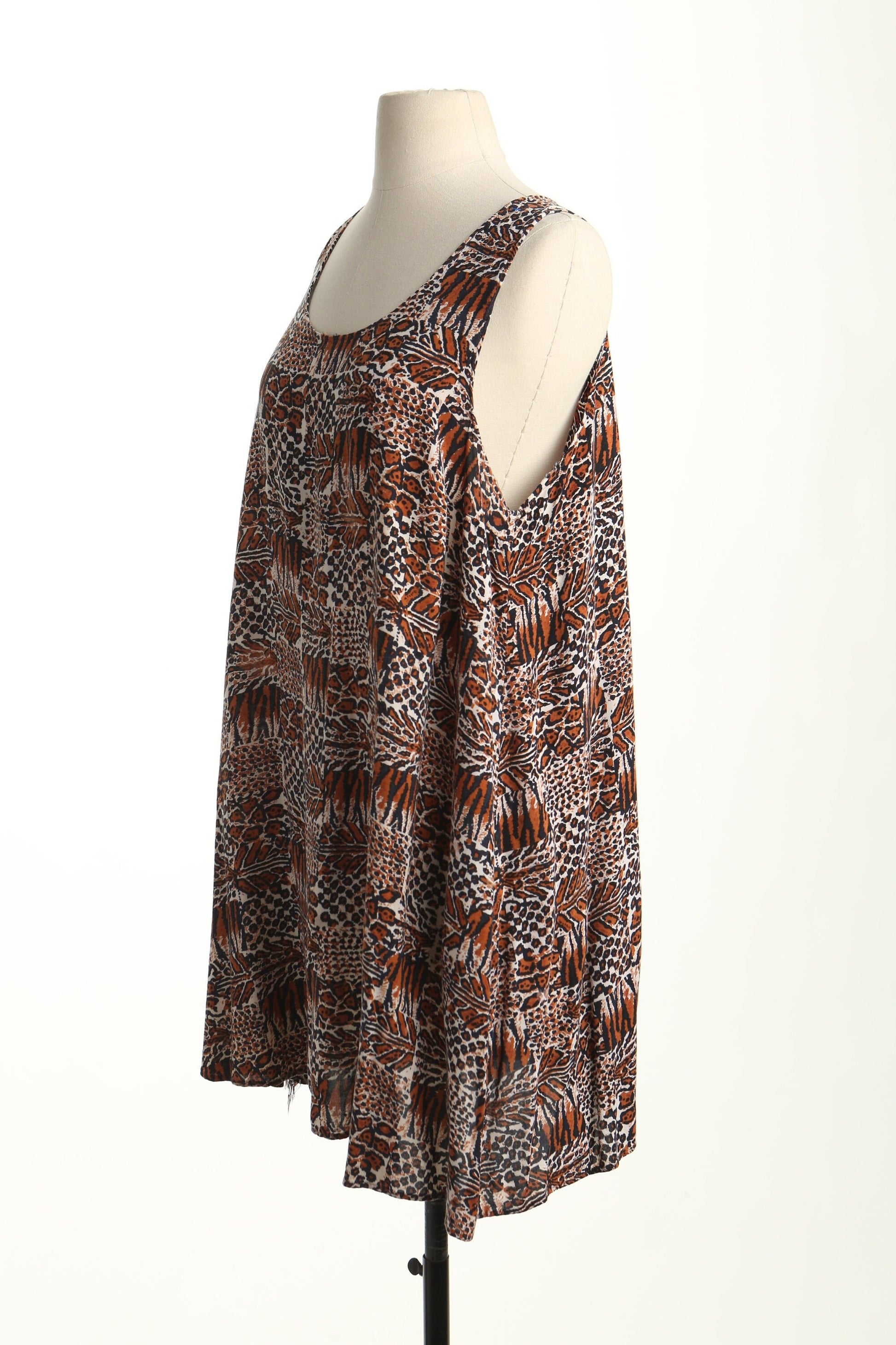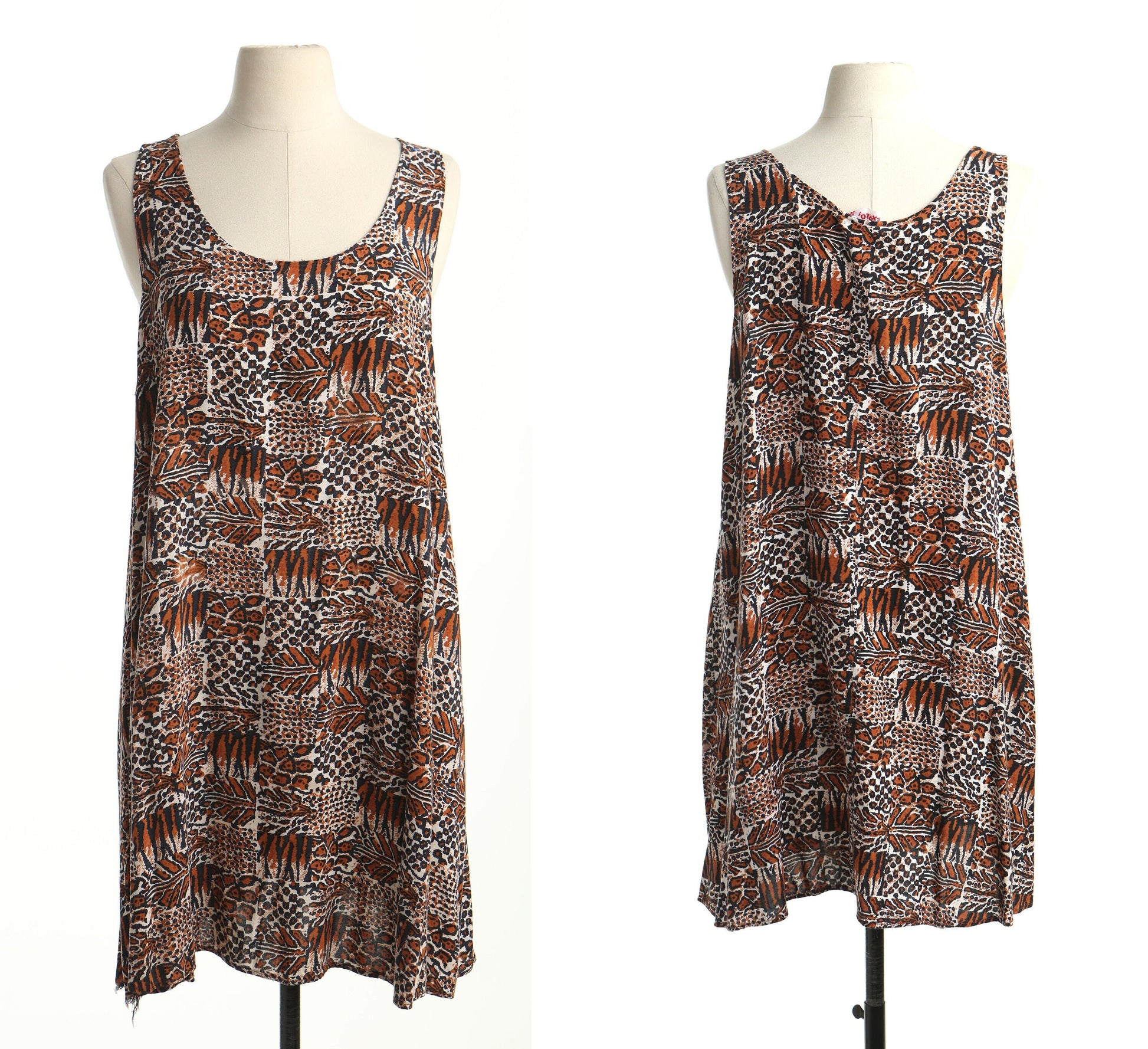 Vintage brown 90's rayon dress sleeveless women beach summer
