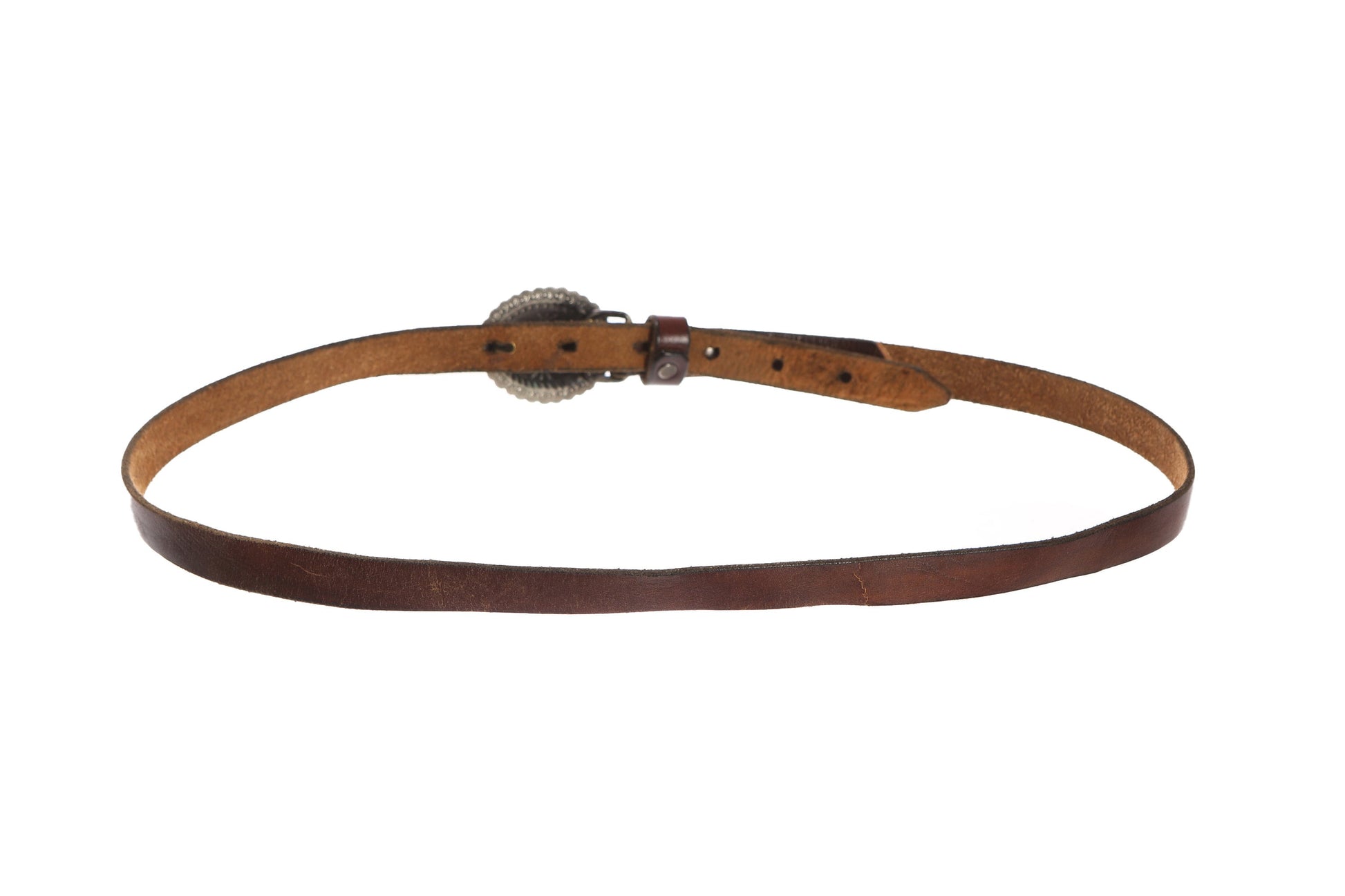 Vintage Brown Leather Belt with Steel Concho Belt Buckle