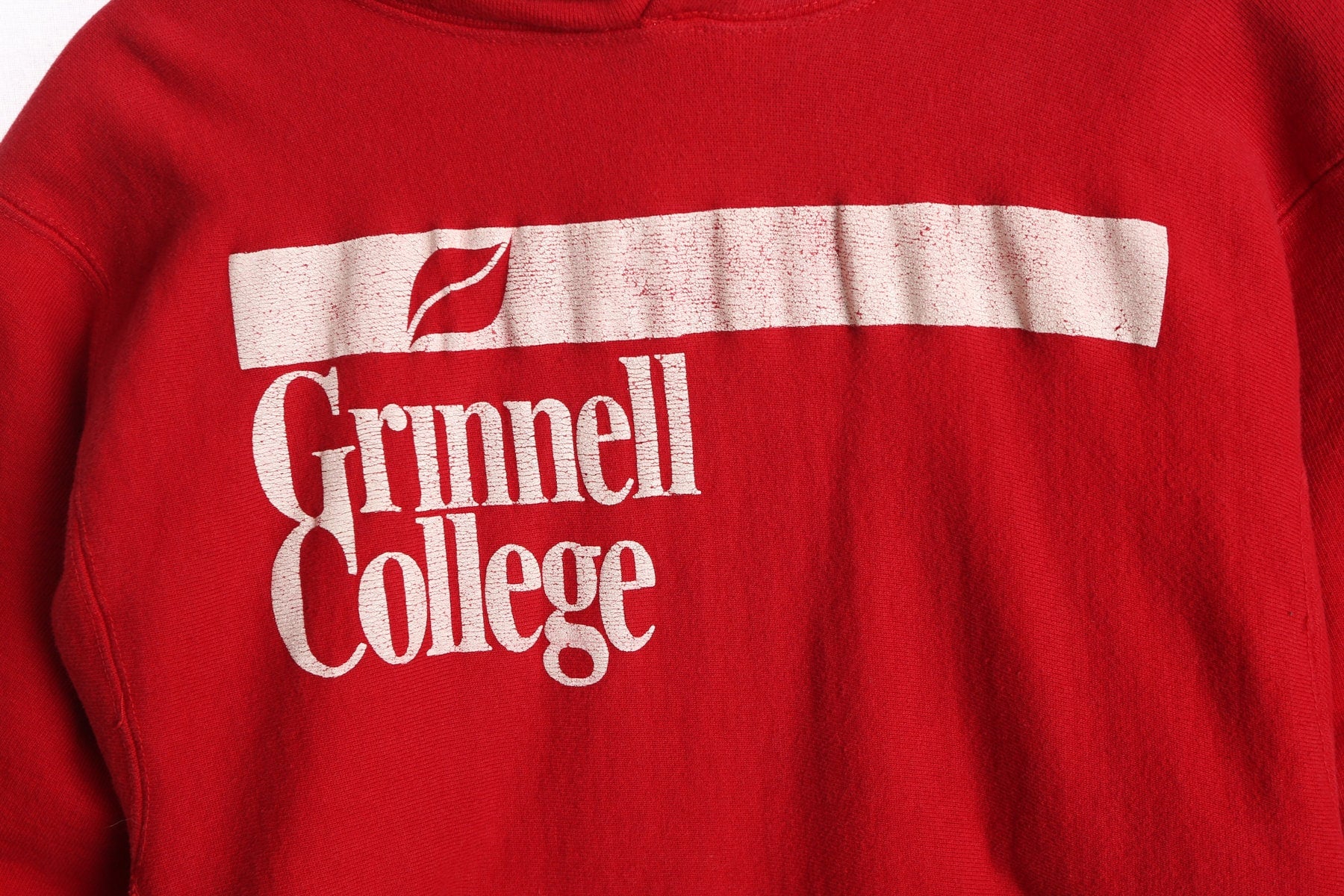 Vintage Champion red Hoodie with Grinnell College White Print - Era 80's - 90's