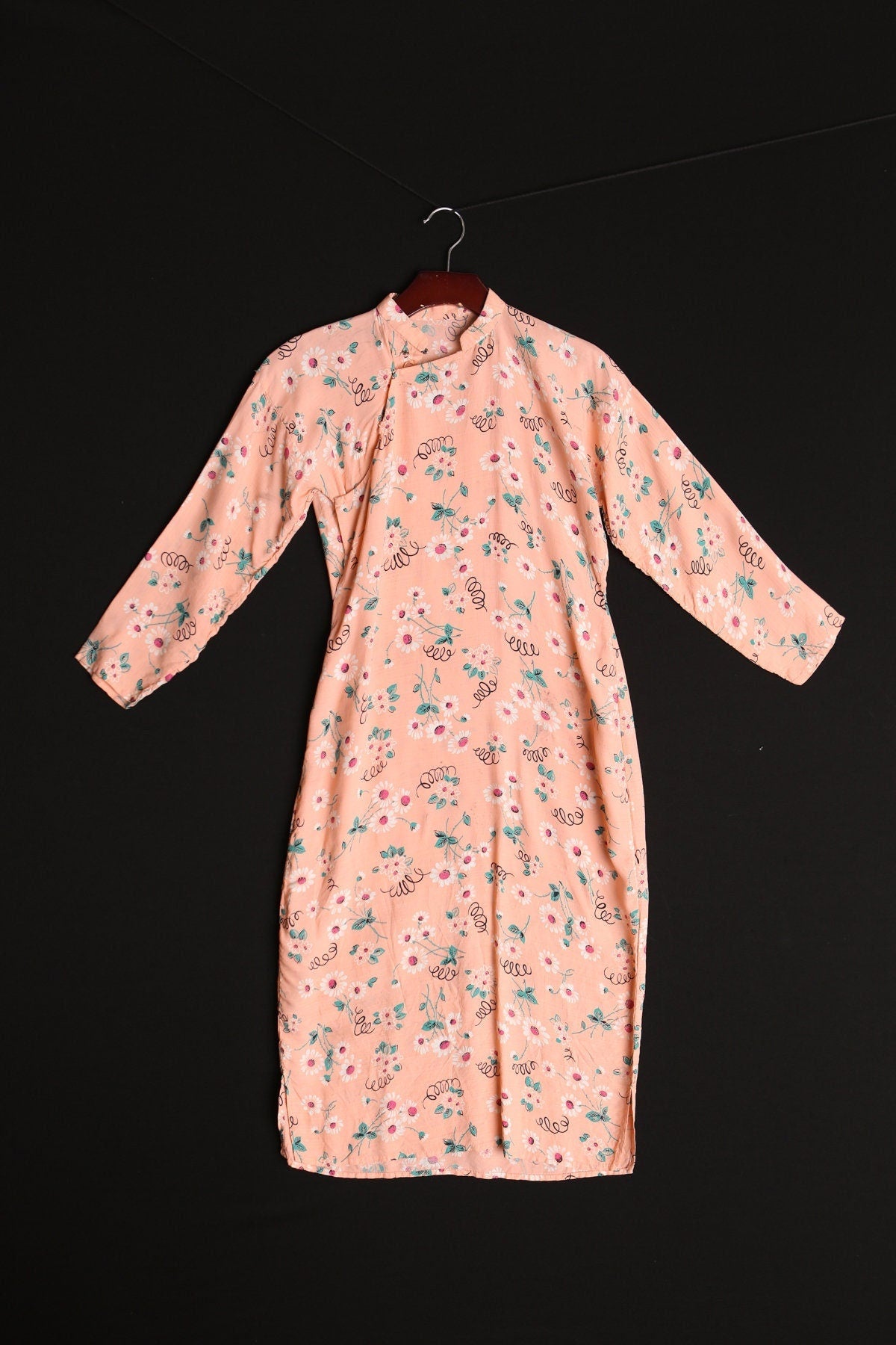 Vintage cheongsam dress mandarin floral print pink chinese summer