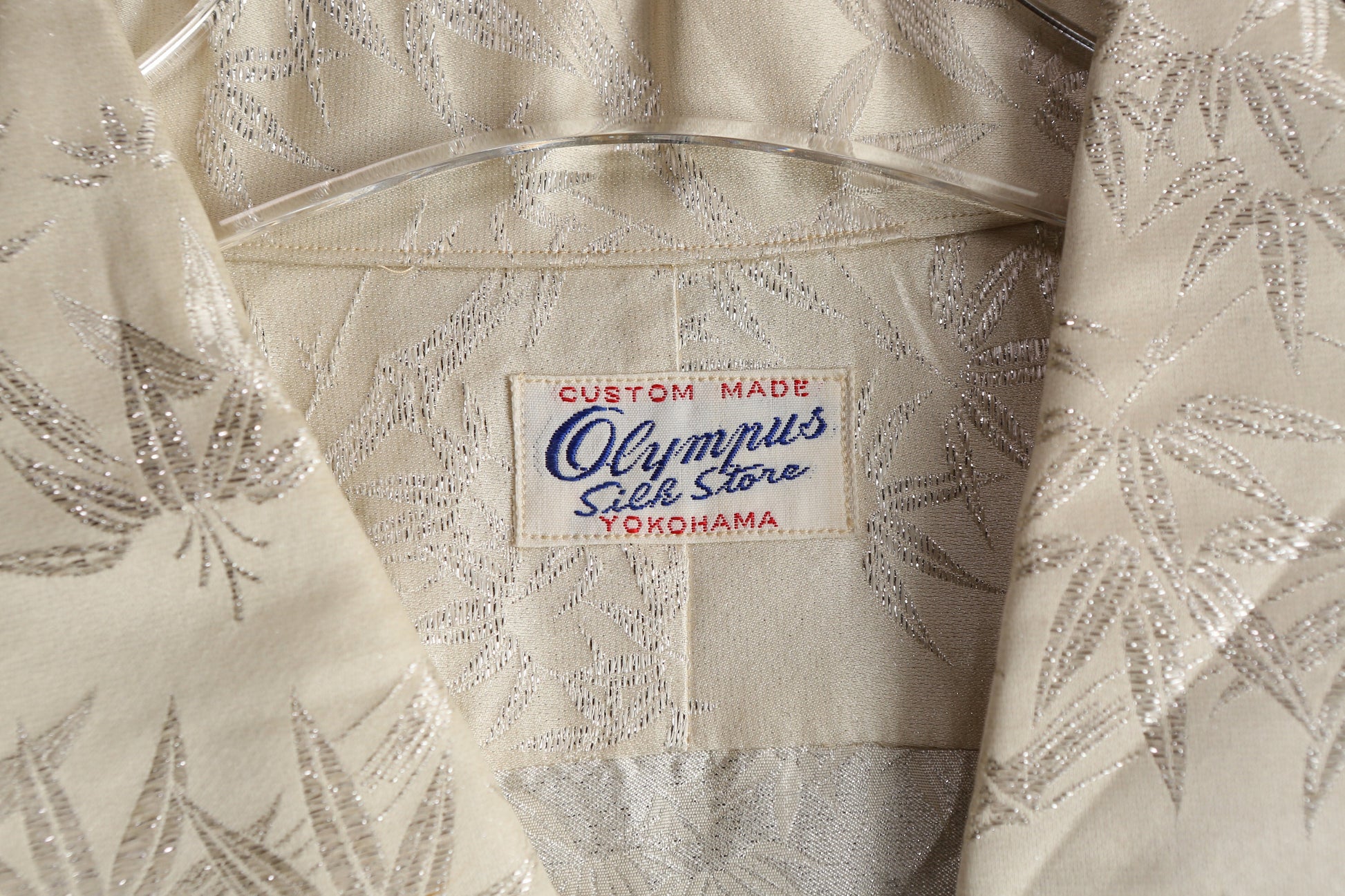 Vintage Costume Made Men's White Metallic Embroidered Shirt by Olympus Silk Store Japan