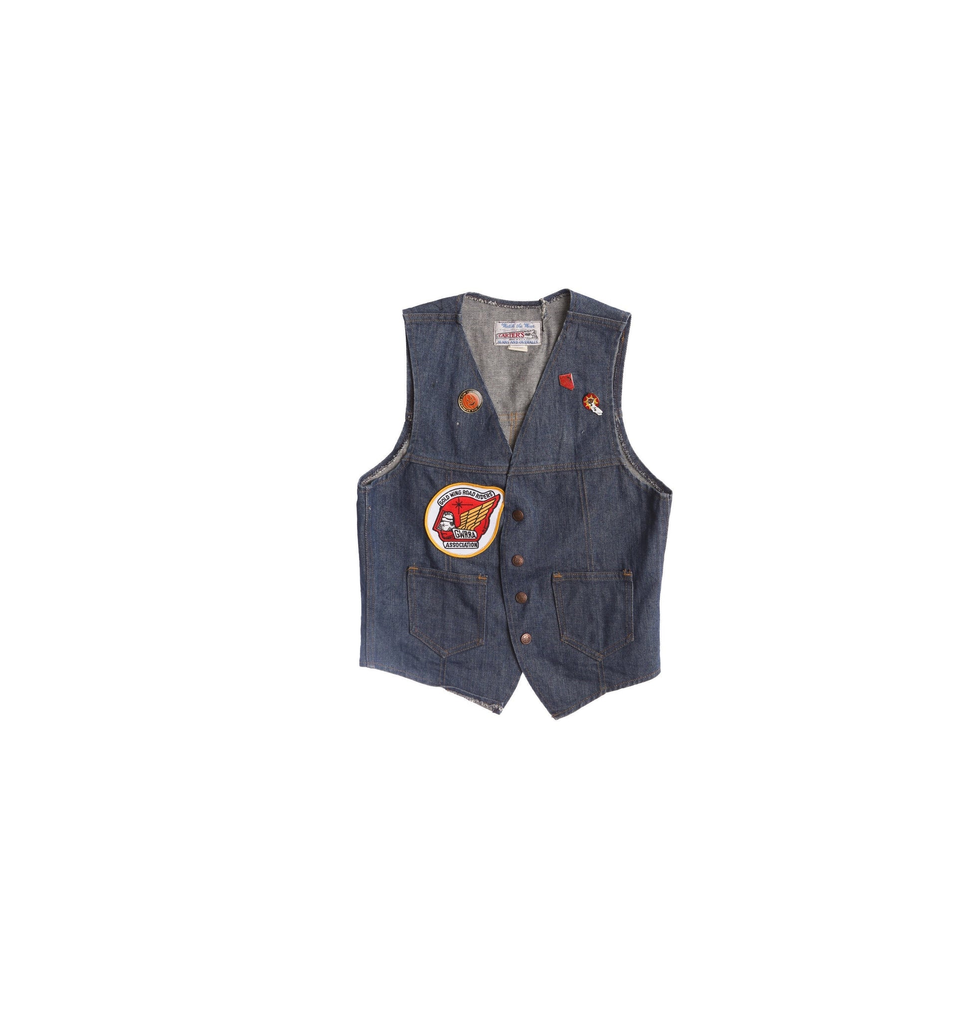 Vintage Denim Biker Vest with Biker Patches - Gold Wing Road Riders Back Patch