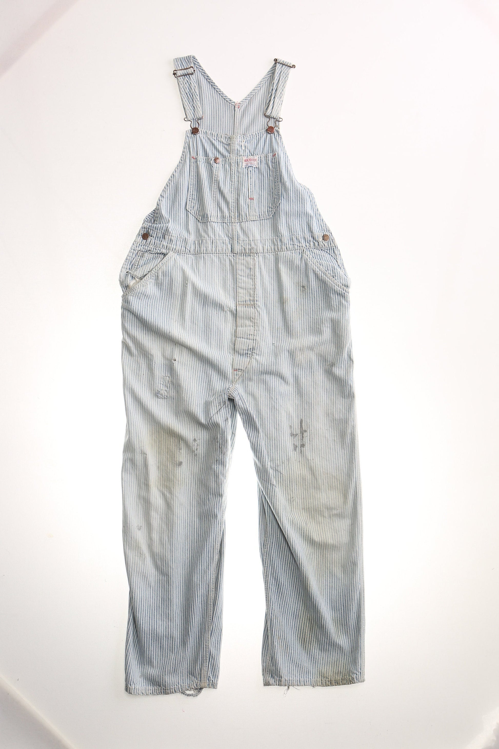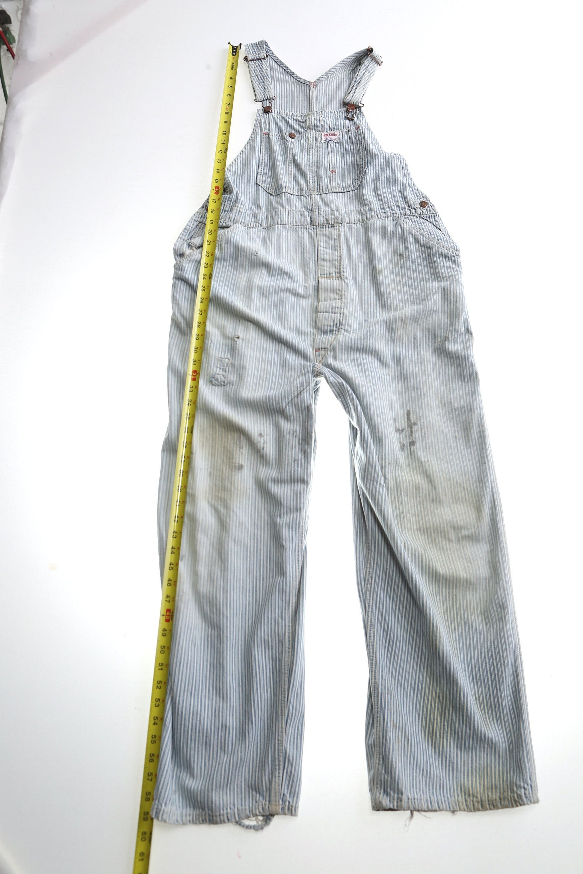 Vintage denim overalls buckhide med 50's farmer striped sanforised cotton