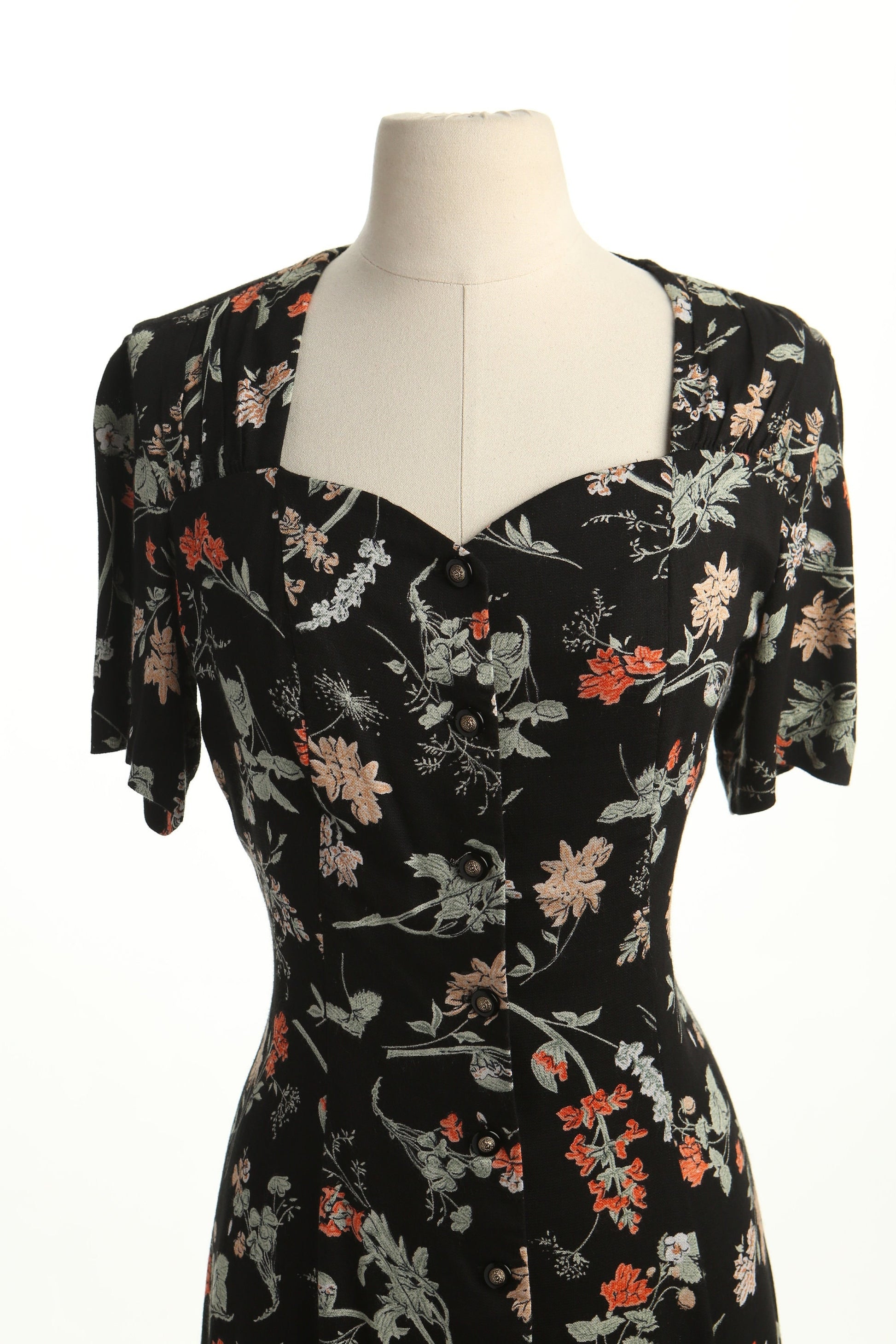 Vintage dress maxi floral black summer casual 90's rayon sexy y2k