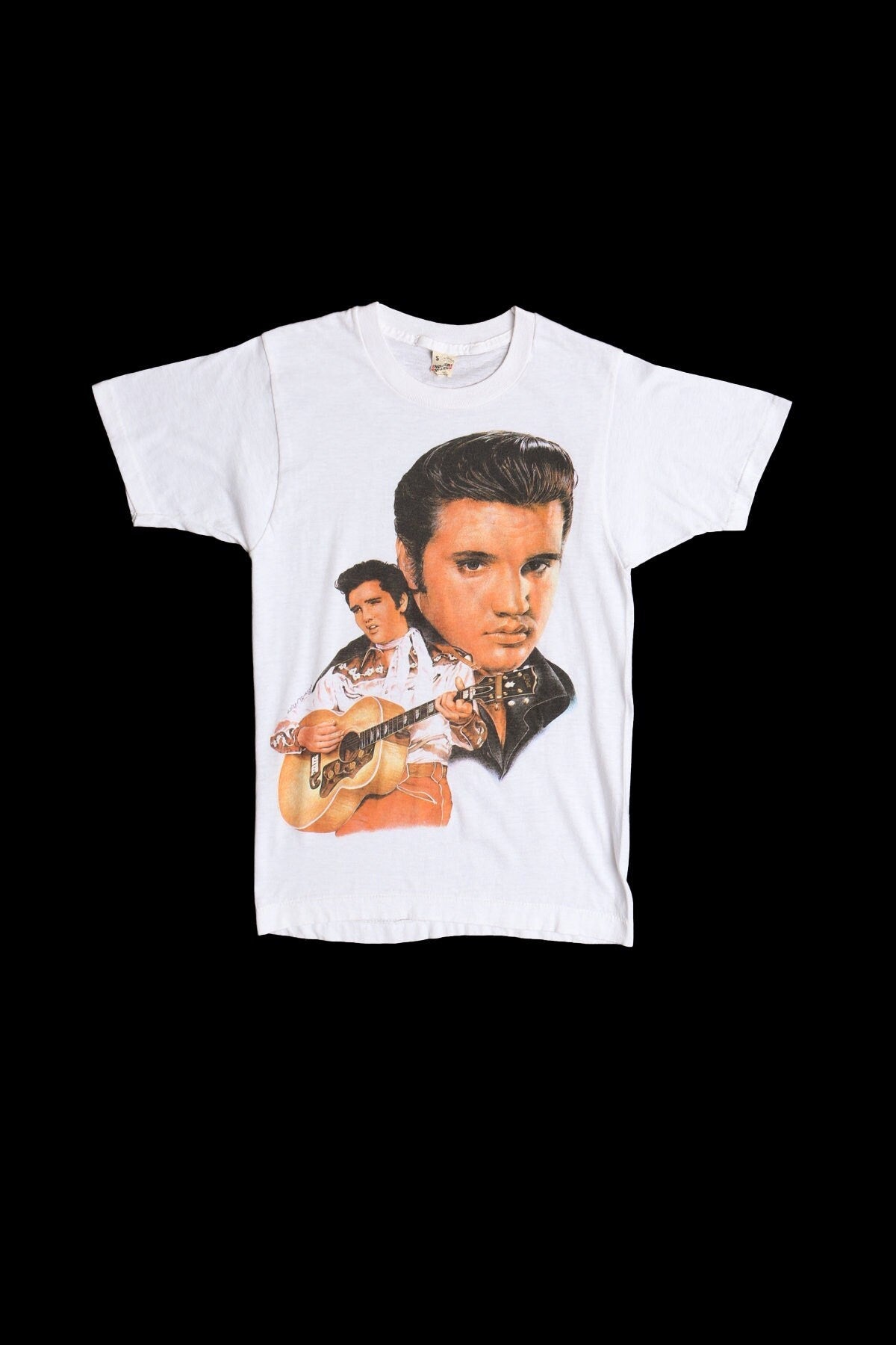 Vintage elvis presley rock and roll graphic t-shirt white king guitar hawaii country 70's music