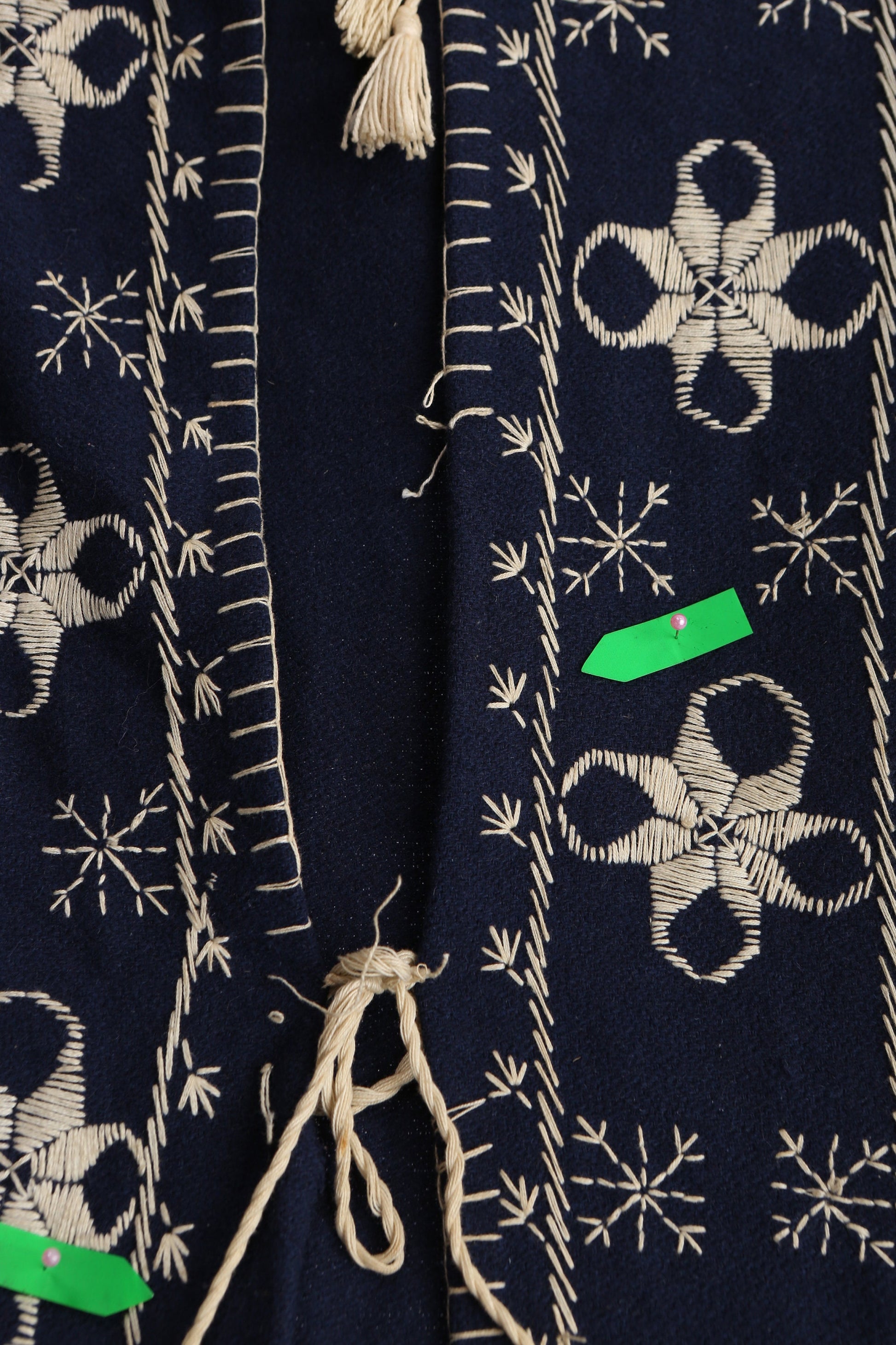 Vintage Embroidered Blue Hooded Open Robe