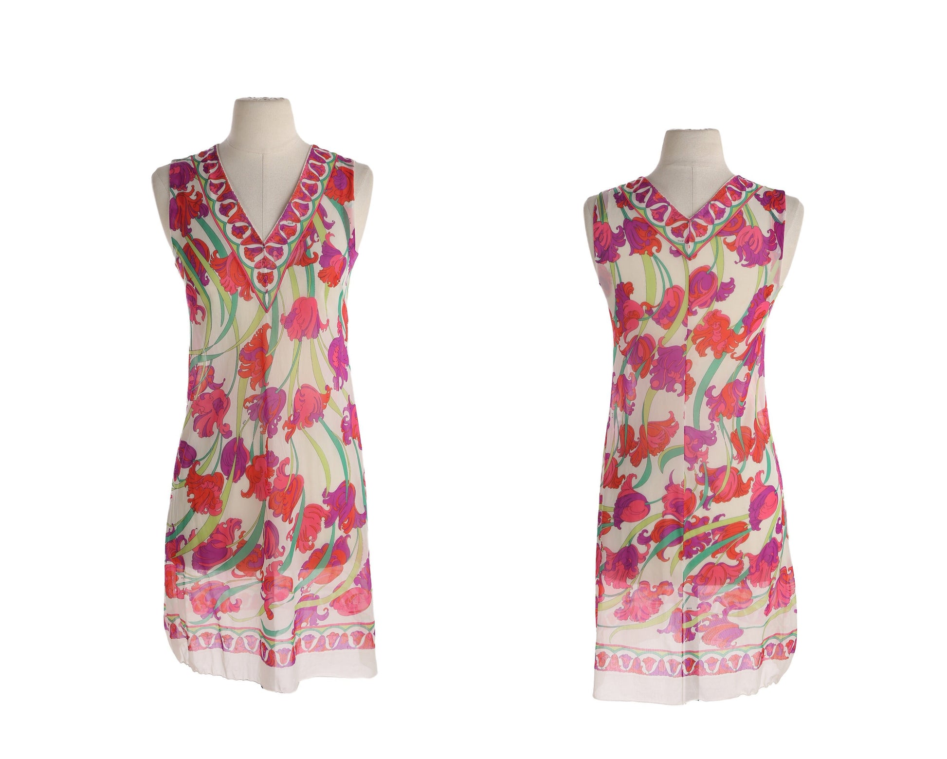 Vintage Emilion Pucci Floral Print Poly Summer Dress