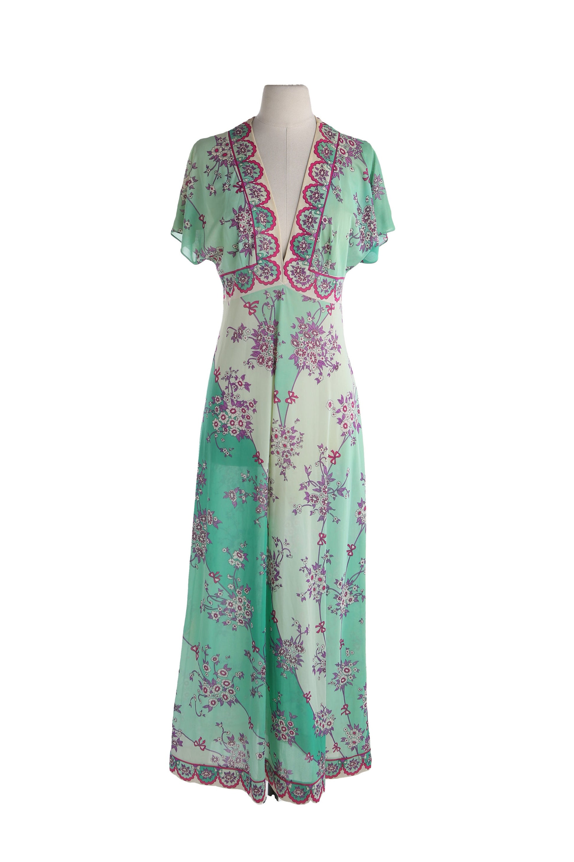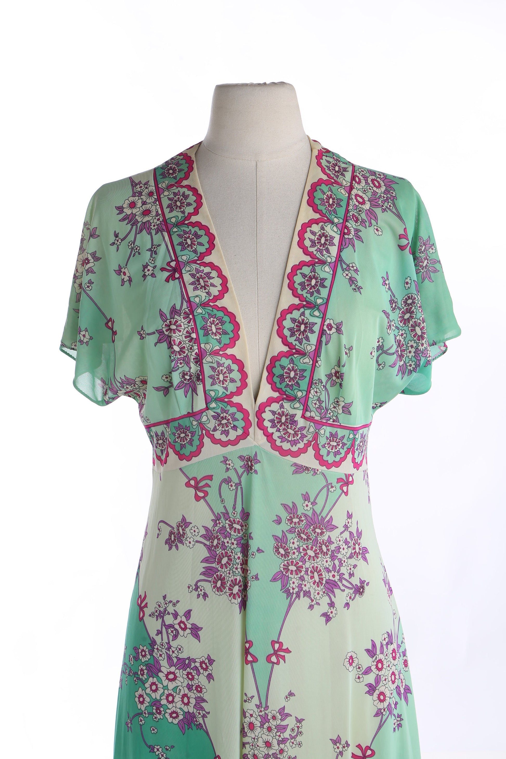 Vintage Emilion Pucci Green Floral Print Summer Dress