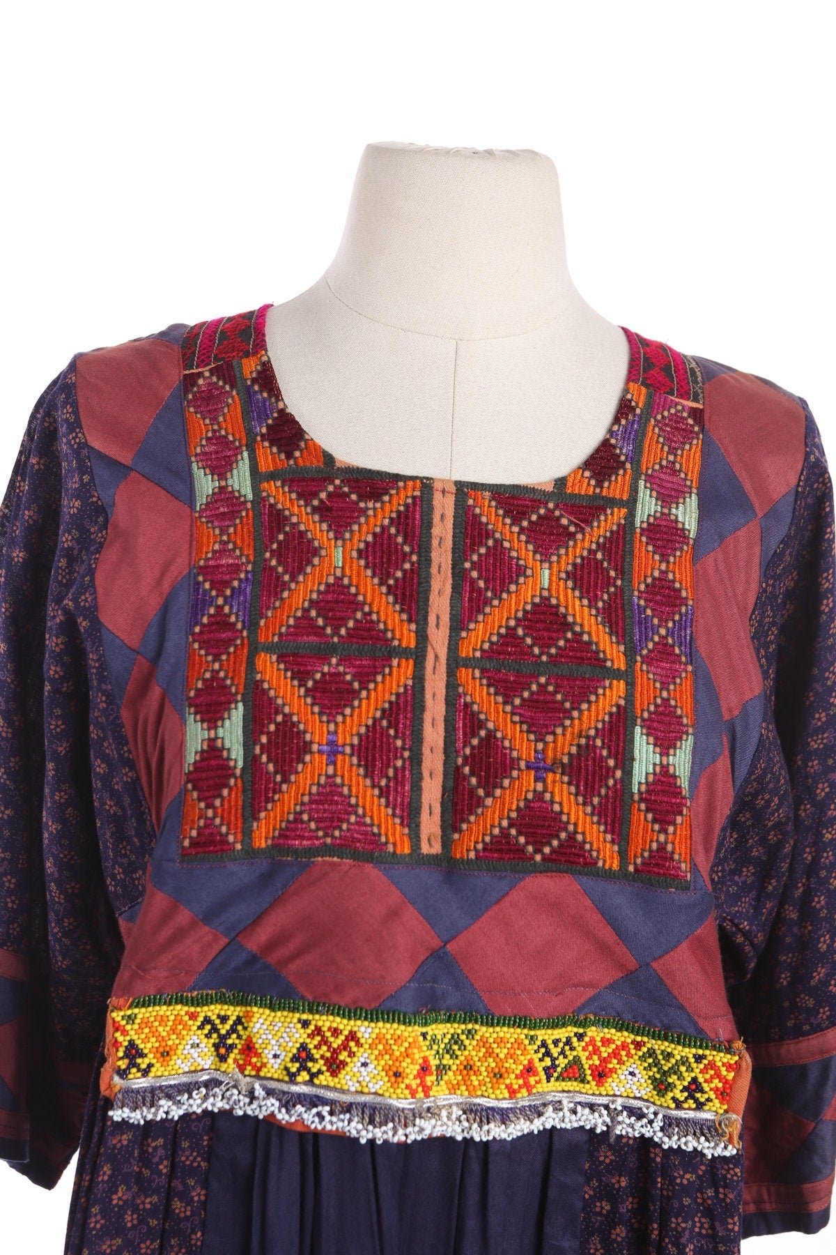 Vintage Ethnic Dress with Floral Print and Embroidered Designs