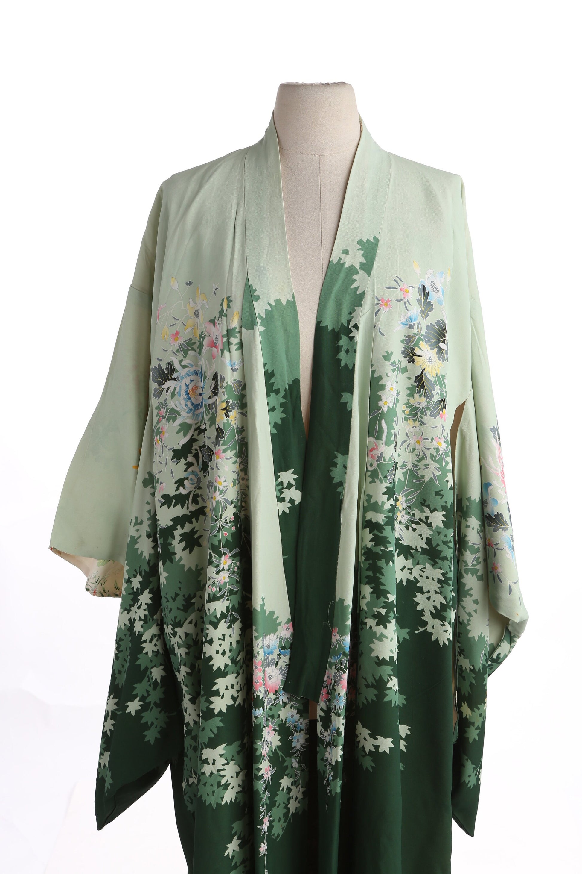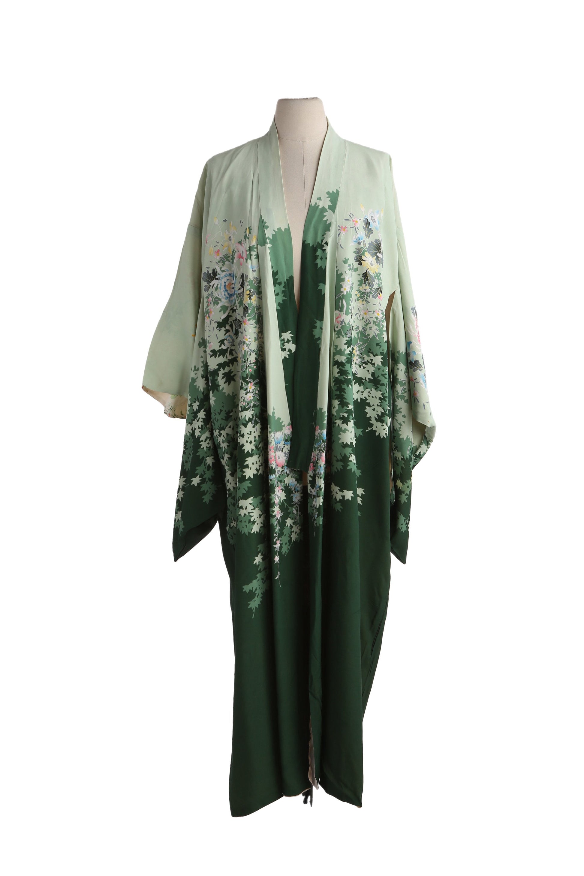 Vintage Flora Print Green Kimono Robe