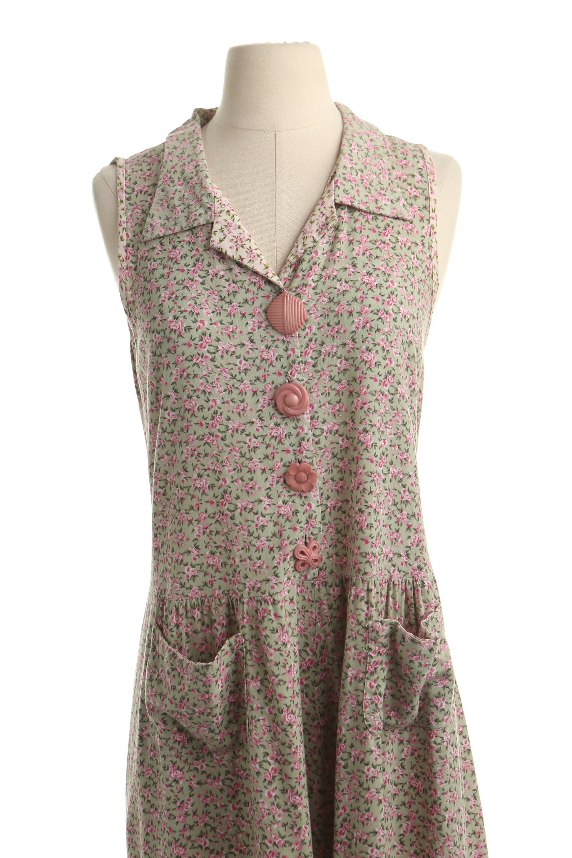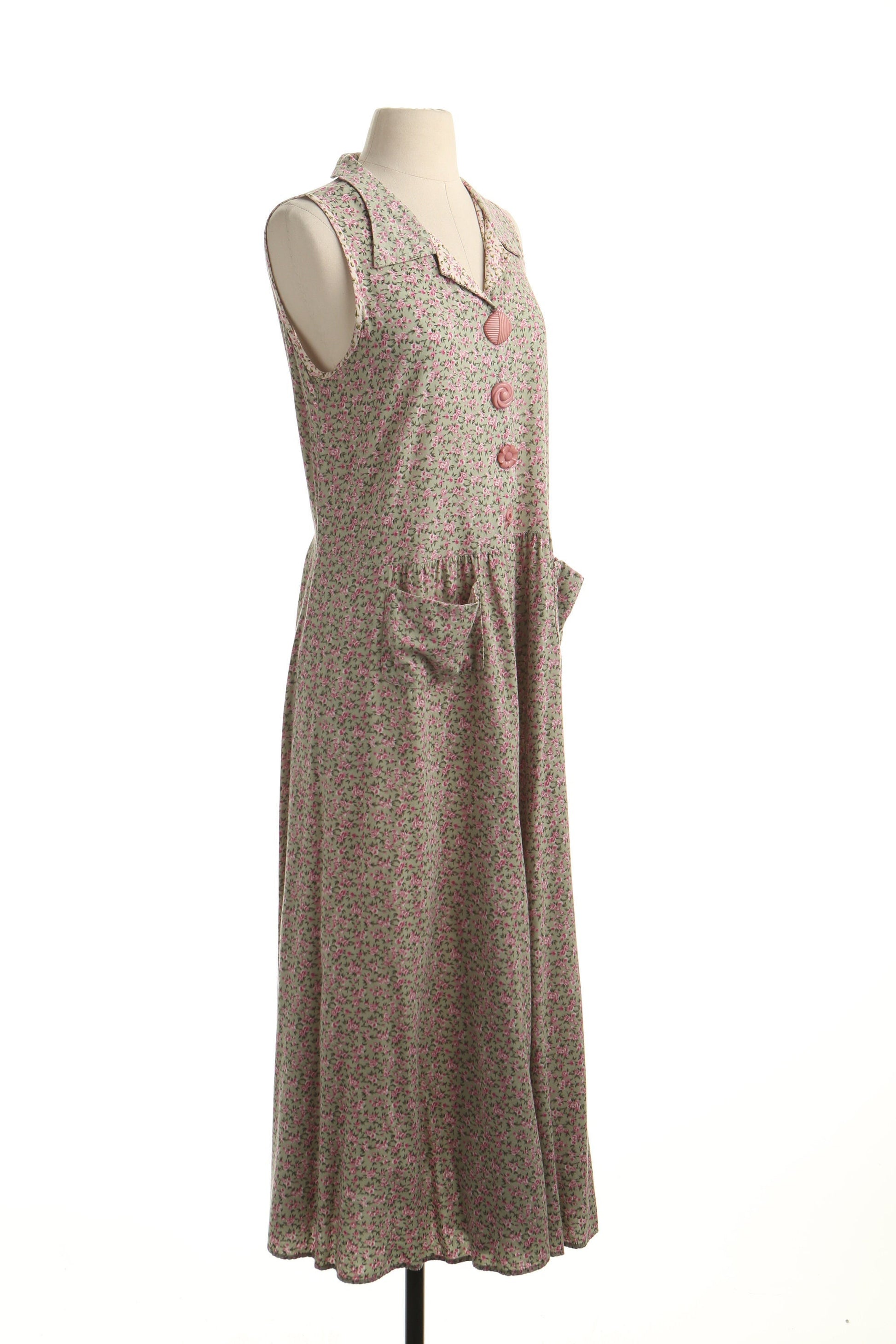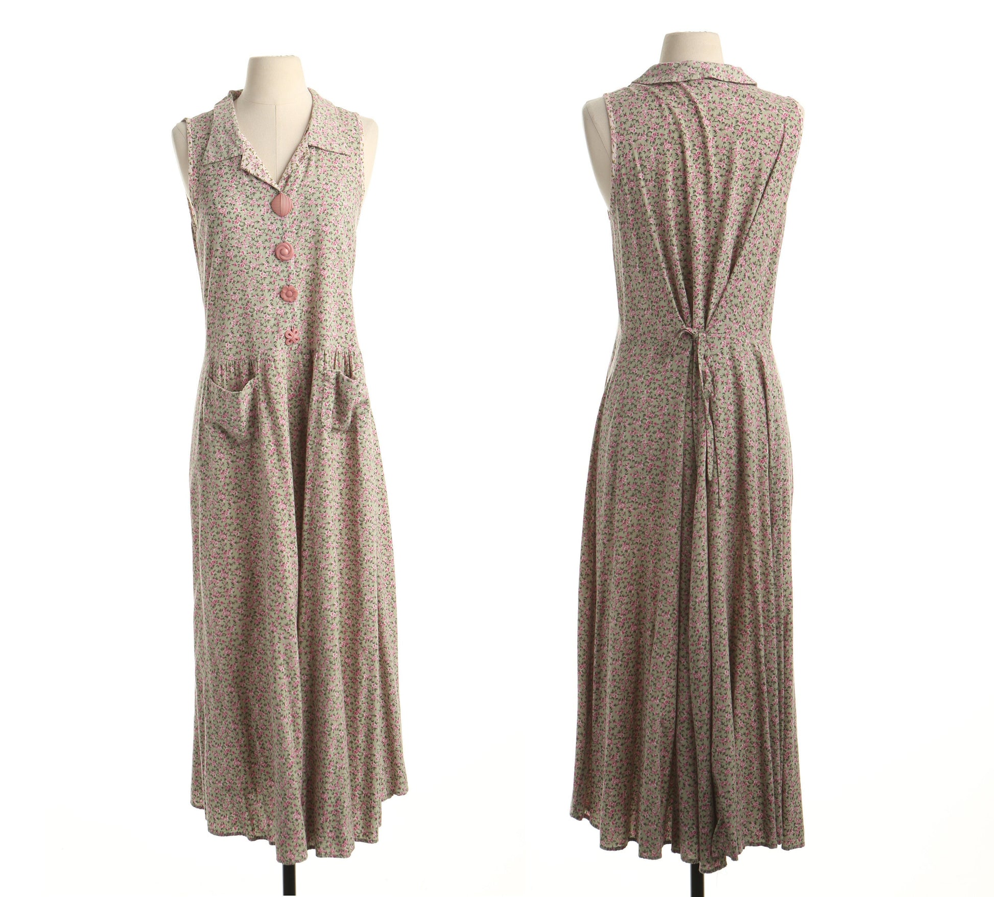 Vintage floral maxi summer dress 90's rayon beige green casual