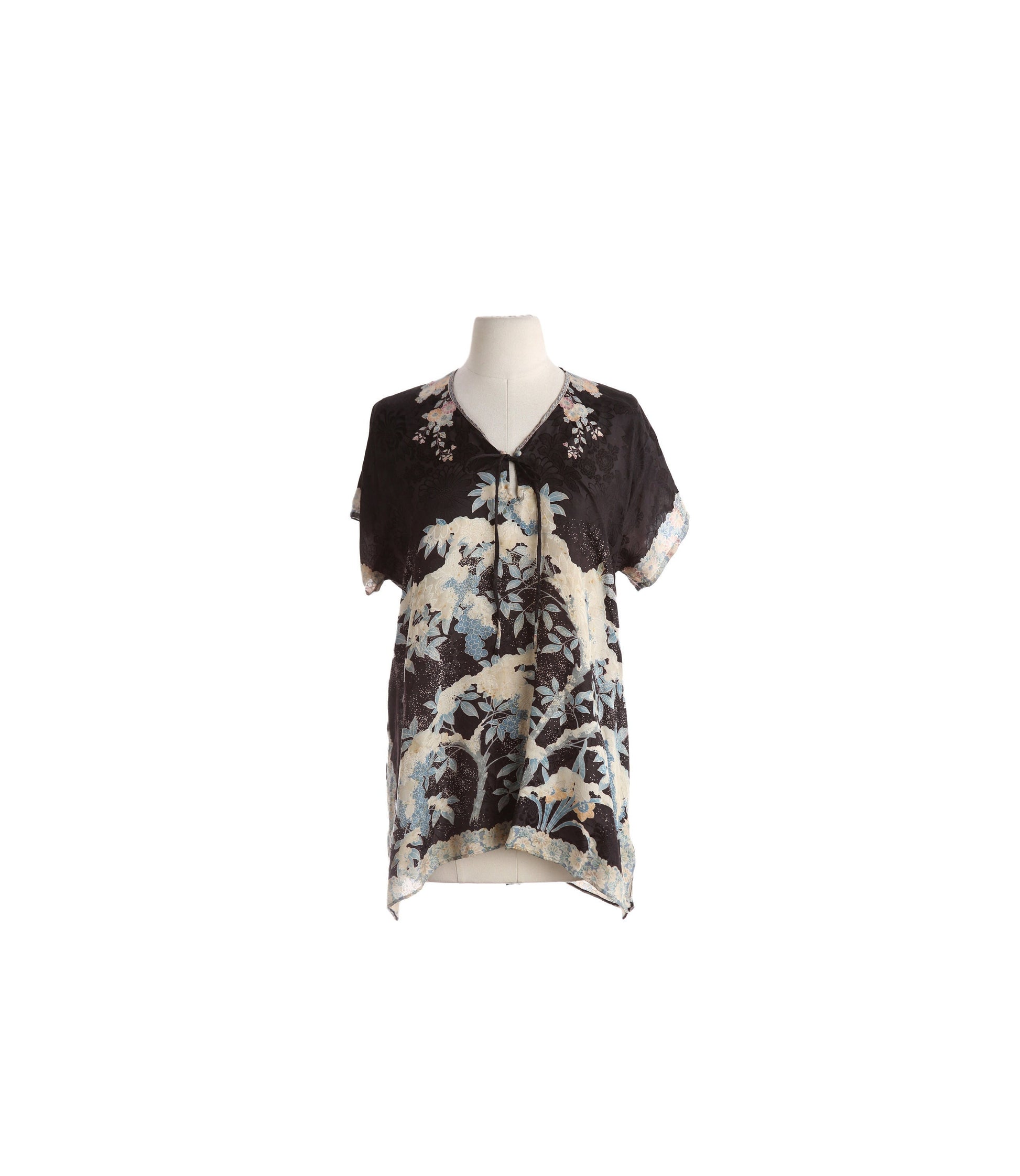 Vintage Floral Print Black Blouse - Estimated Era 1970's - 1980's