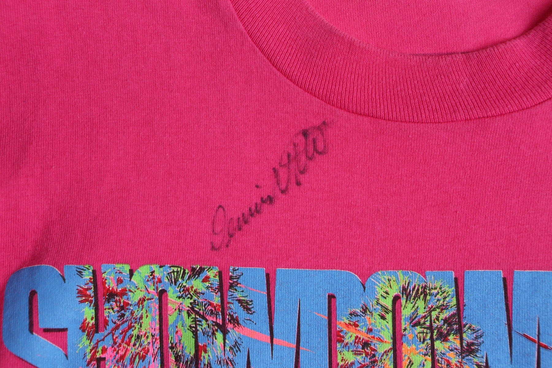 Vintage formula one malboro toyota texaco graphic t-shirt long beach autographed pink shirt racing