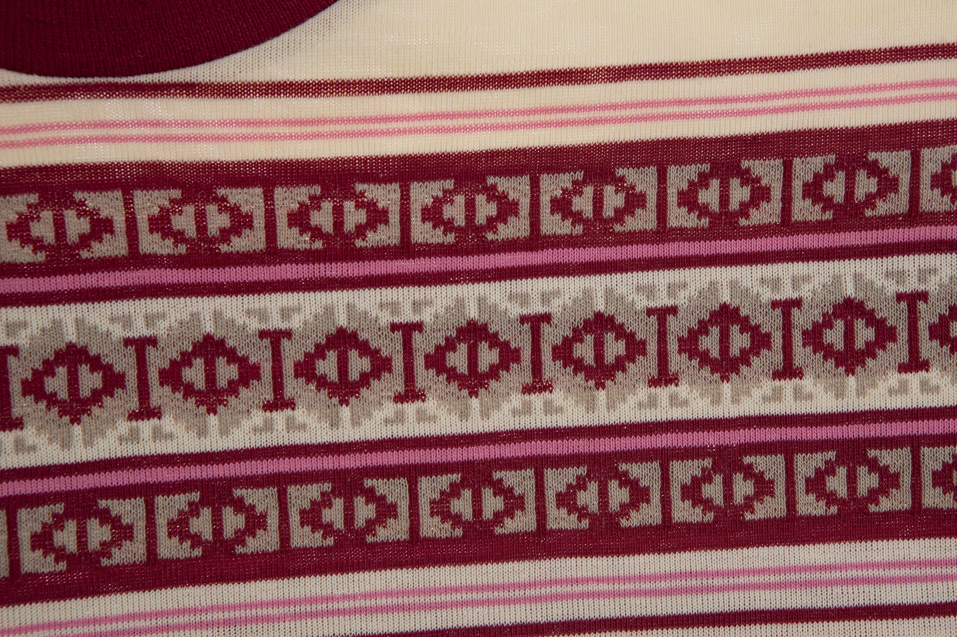 Vintage Geometric Print Crew Neck Beige T-shirt - Era 1960's - 1970's