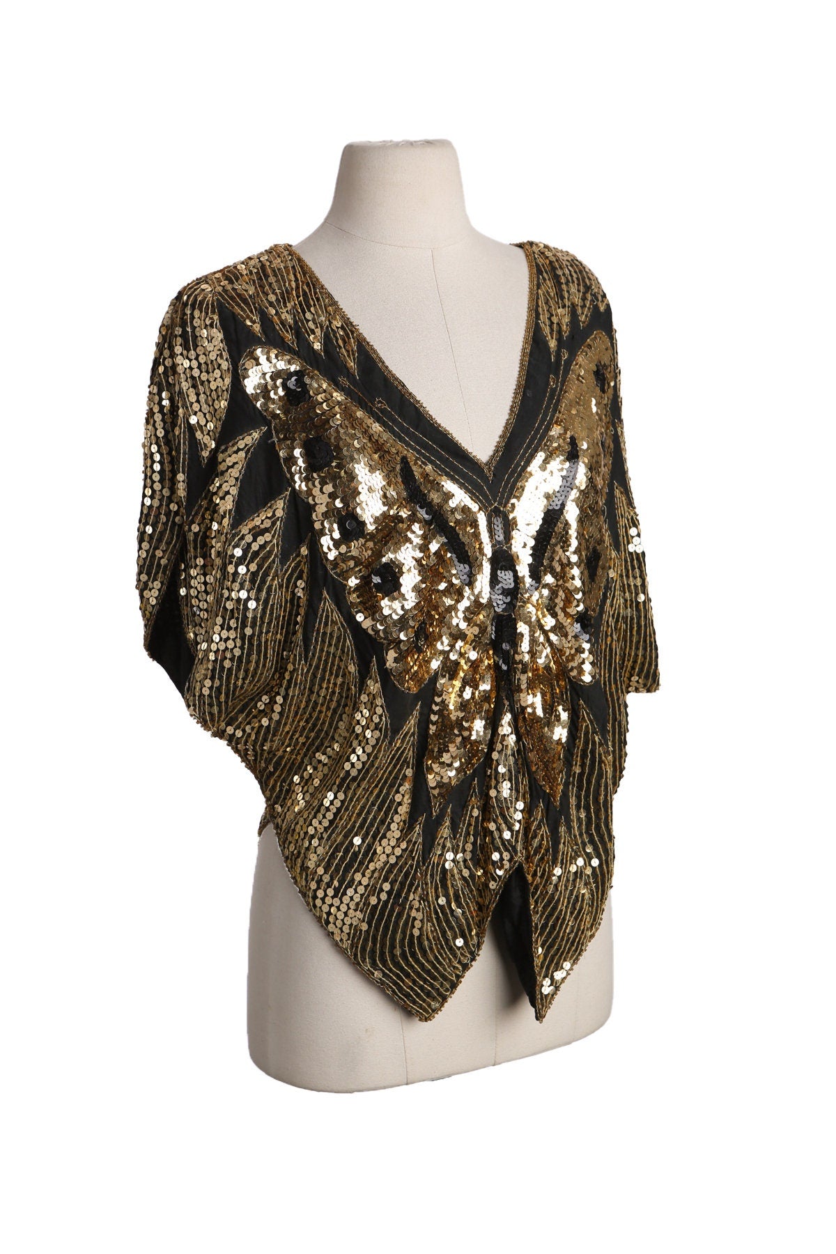 Vintage Golden Sequin Buttle Fly Top - Era 70s - 80s - Disco