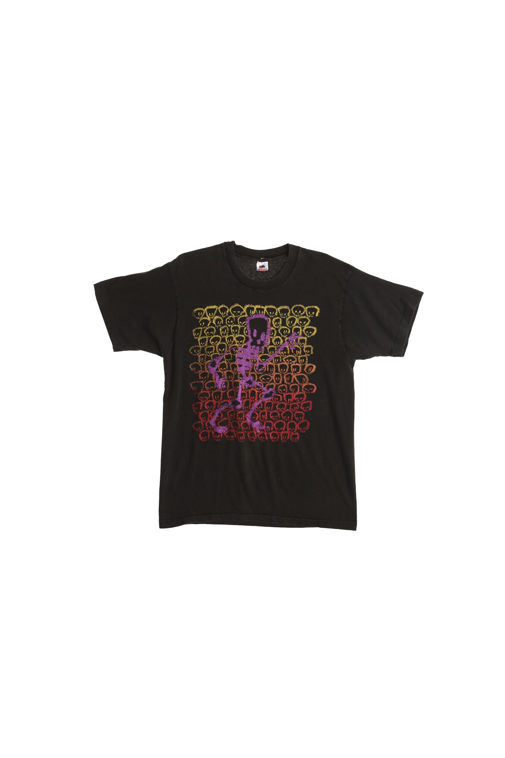Vintage graphic 90's black t-shirt fruit of the loom l shirt purple skeleton skulls