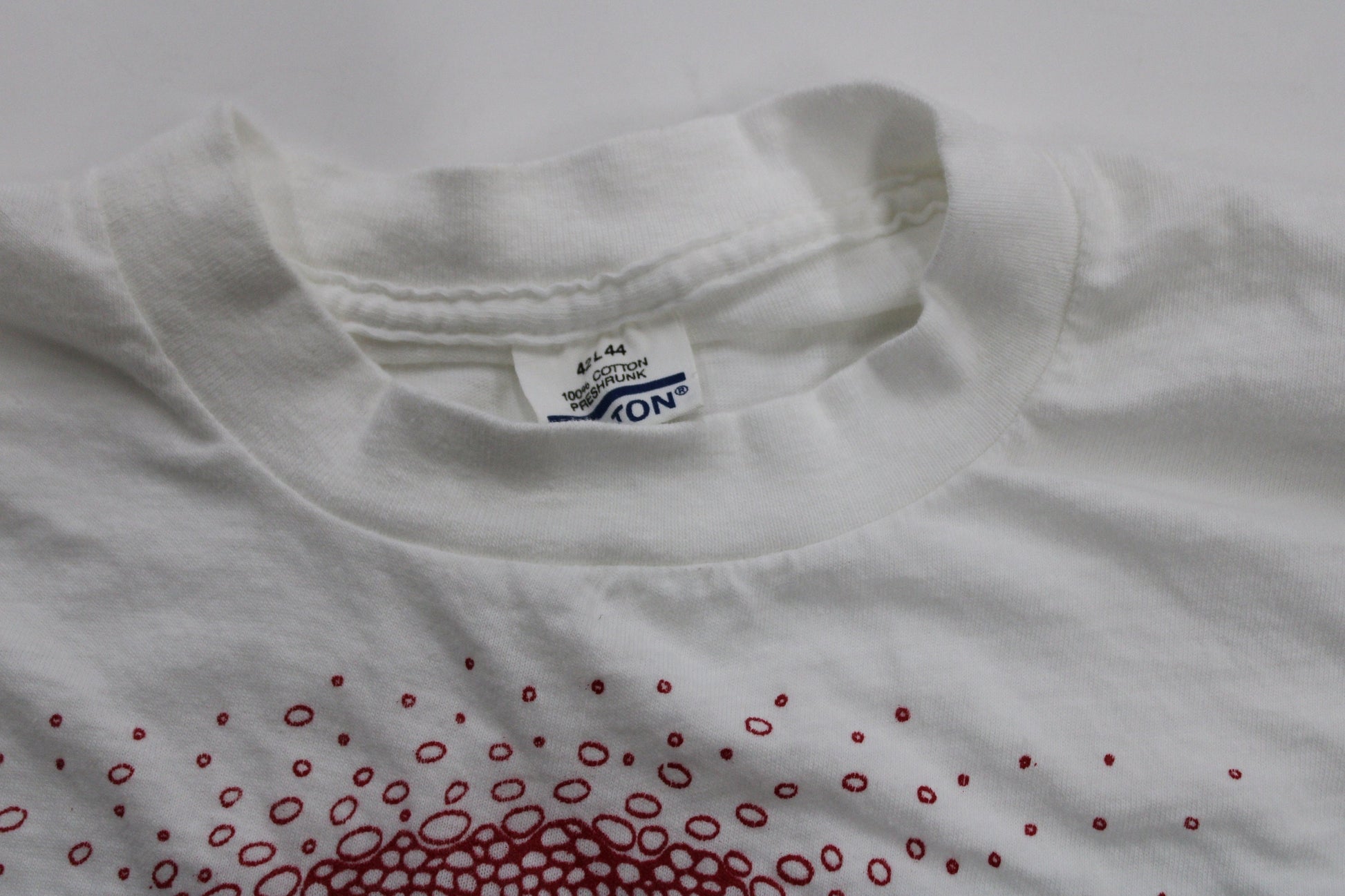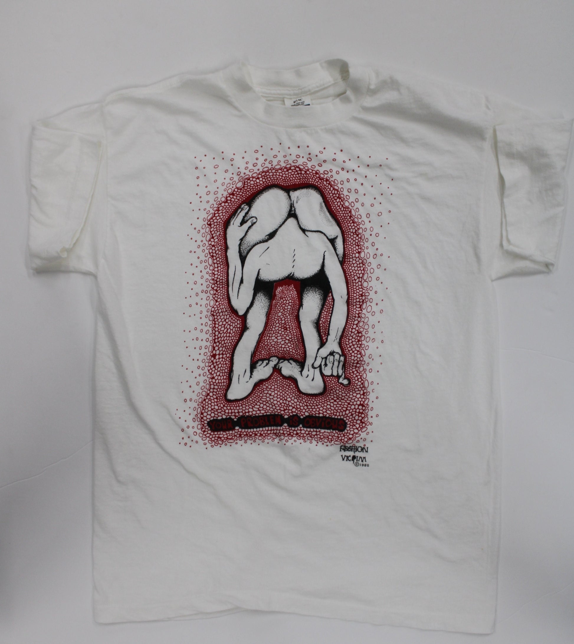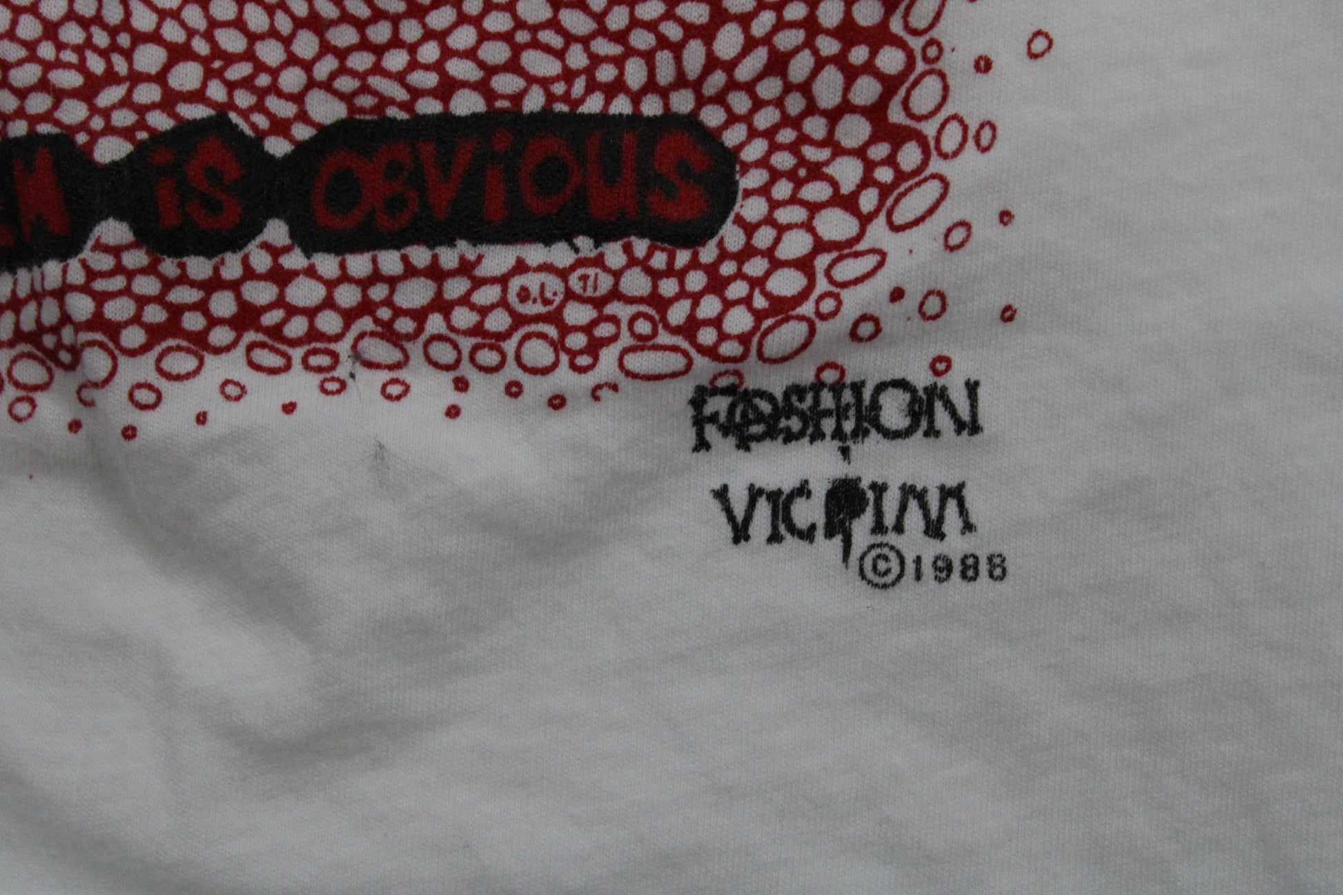Vintage graphic t-shirt made in usa fashion victim 1988 white red human body body print body head rare 80s - 90s