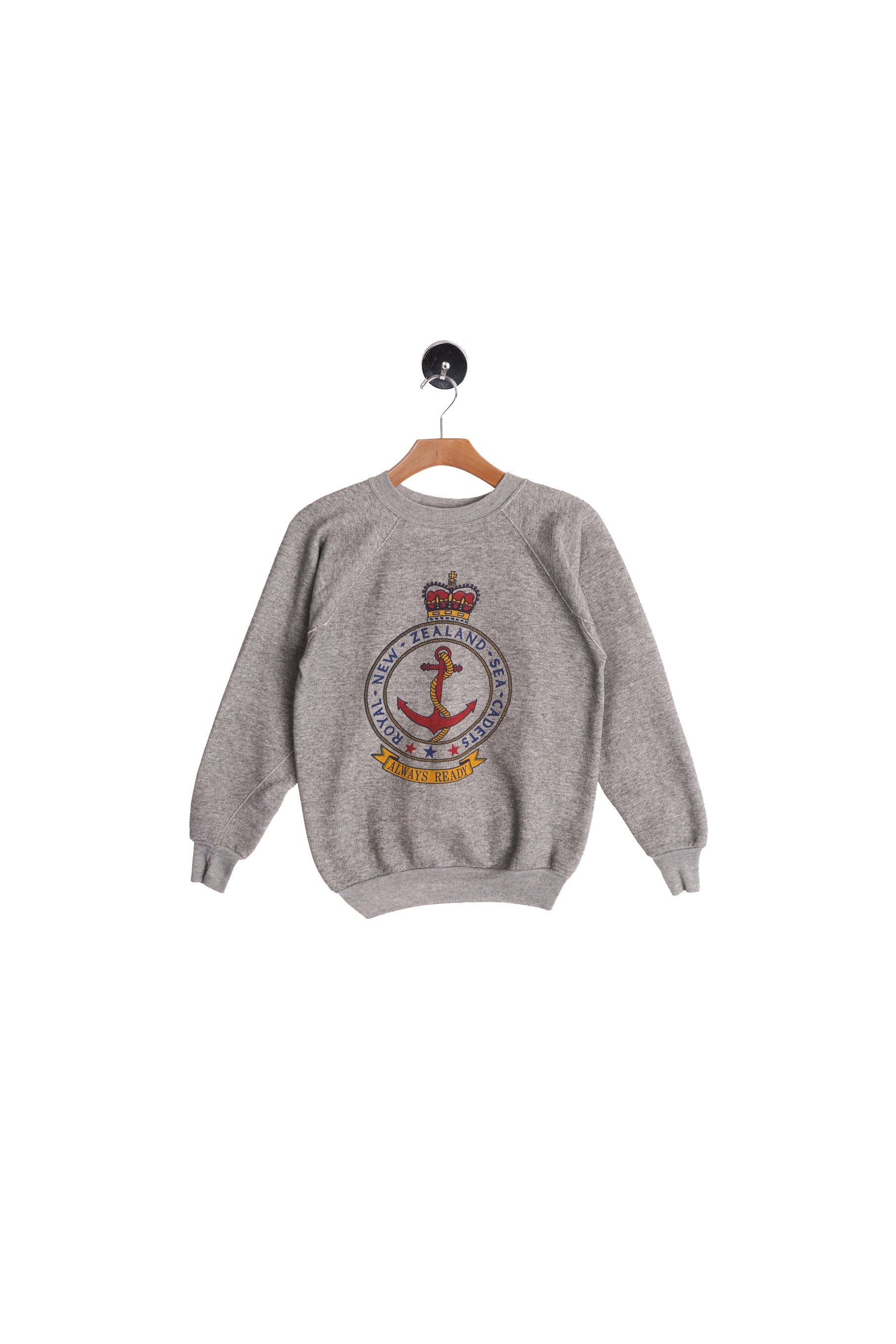 Vintage Gray Graphic Sweatshirt - Royal New Zealand Cadets Print
