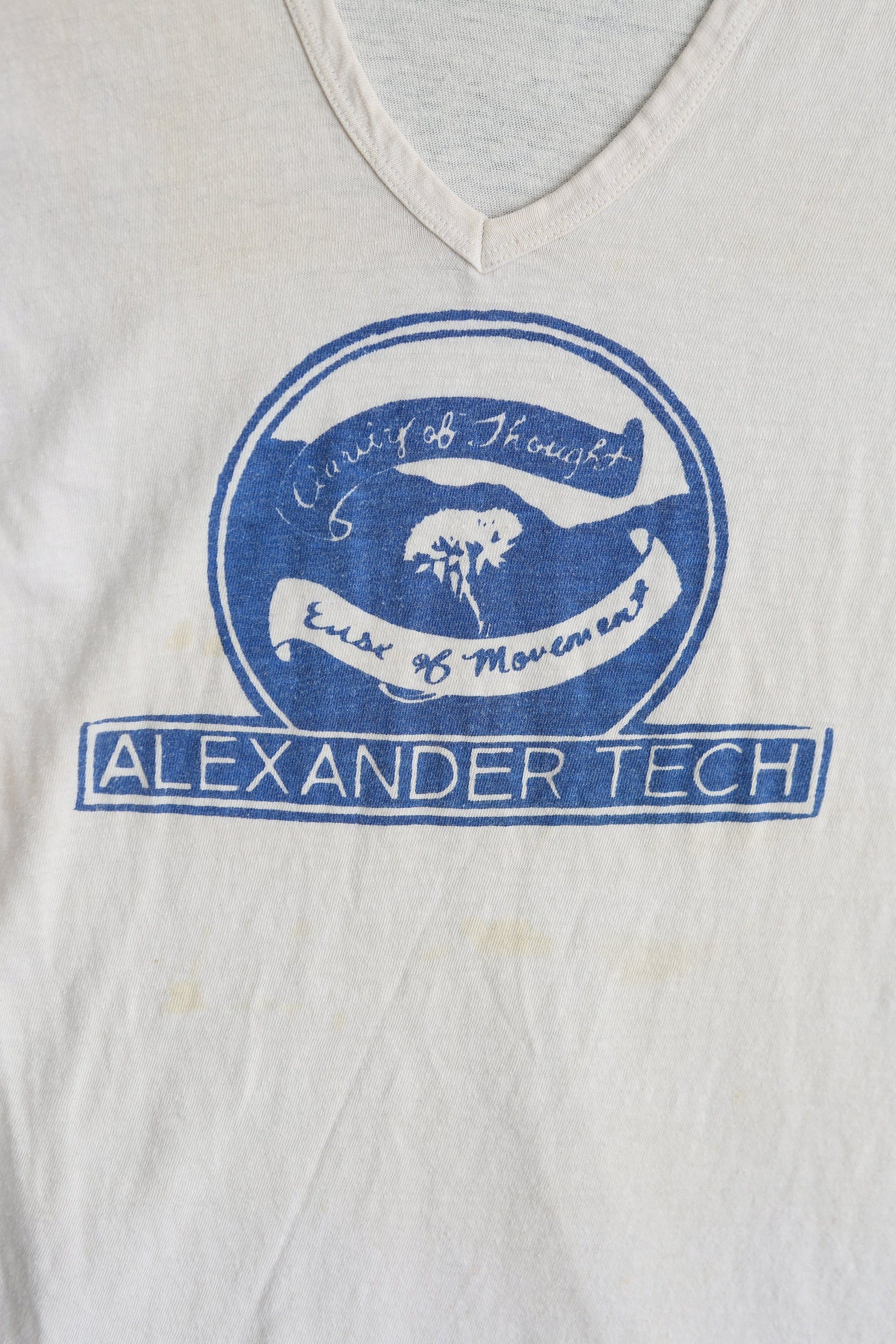 Vintage Hanes White V Neck Graphic T-shirt - Alexander Tech Print