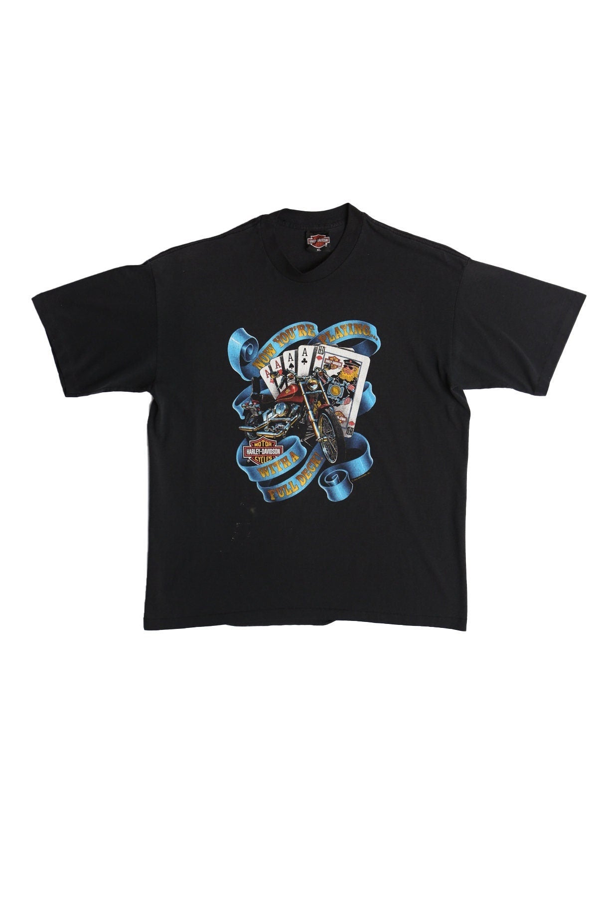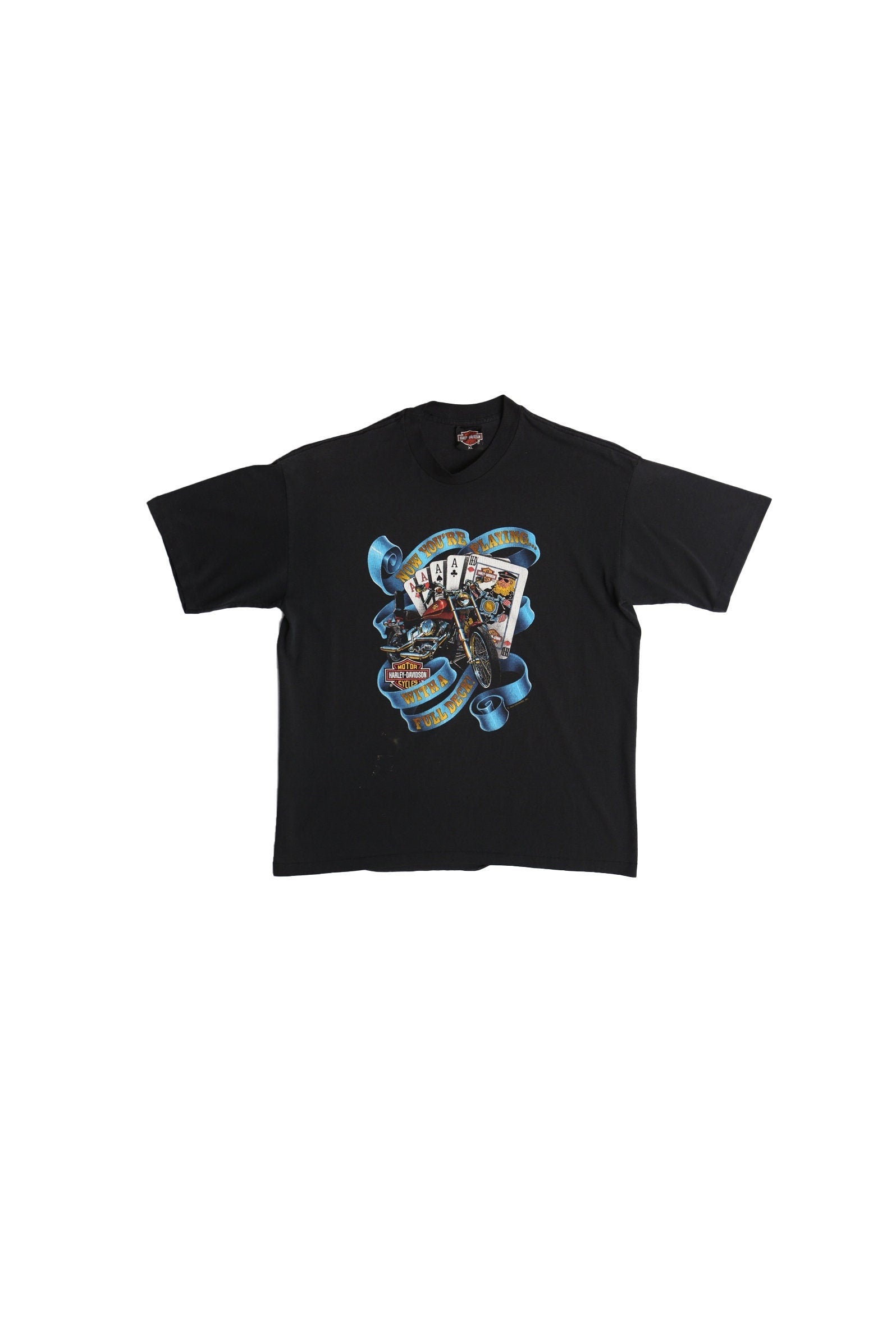 Vintage harley davidson shirt black biker 90's xl dealer poker cards