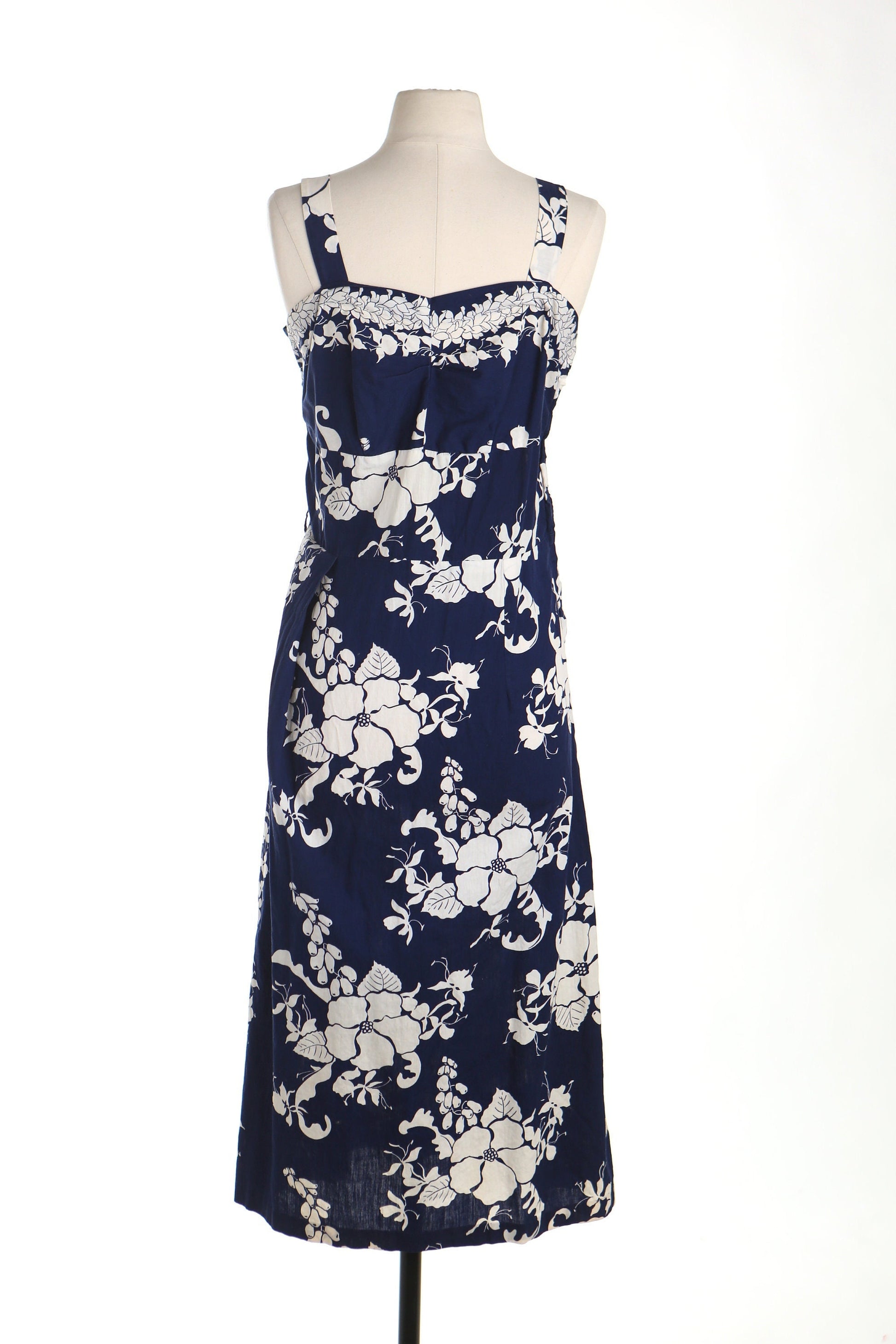 Vintage hawaiian dress floral print blue white strap 40's 50's