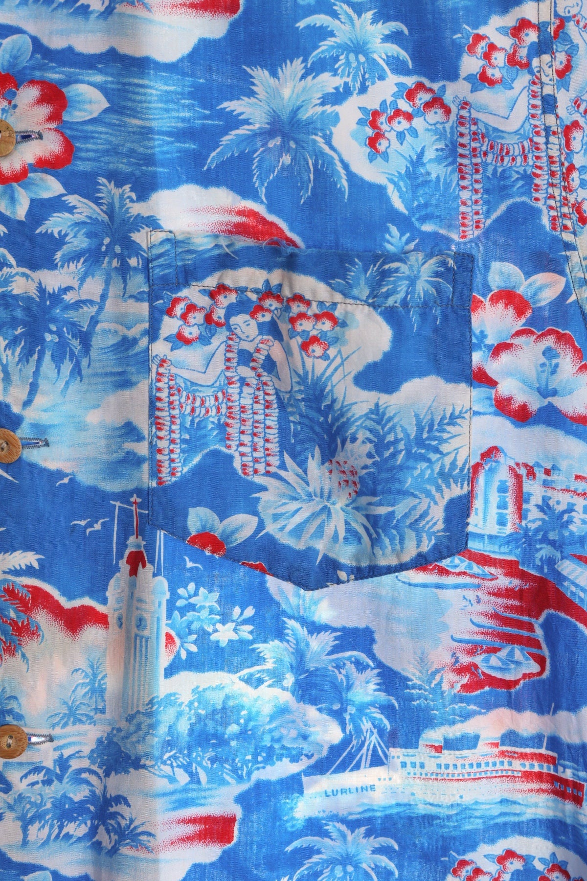Vintage Hawaiian Shirt - Blue Hawaii Beach Print