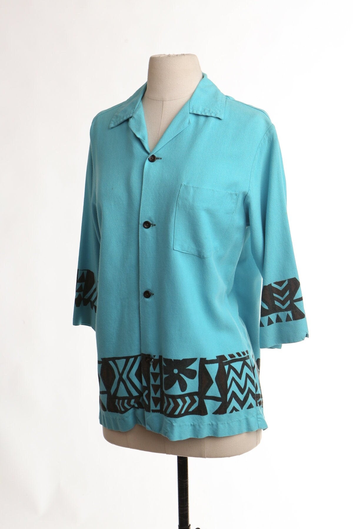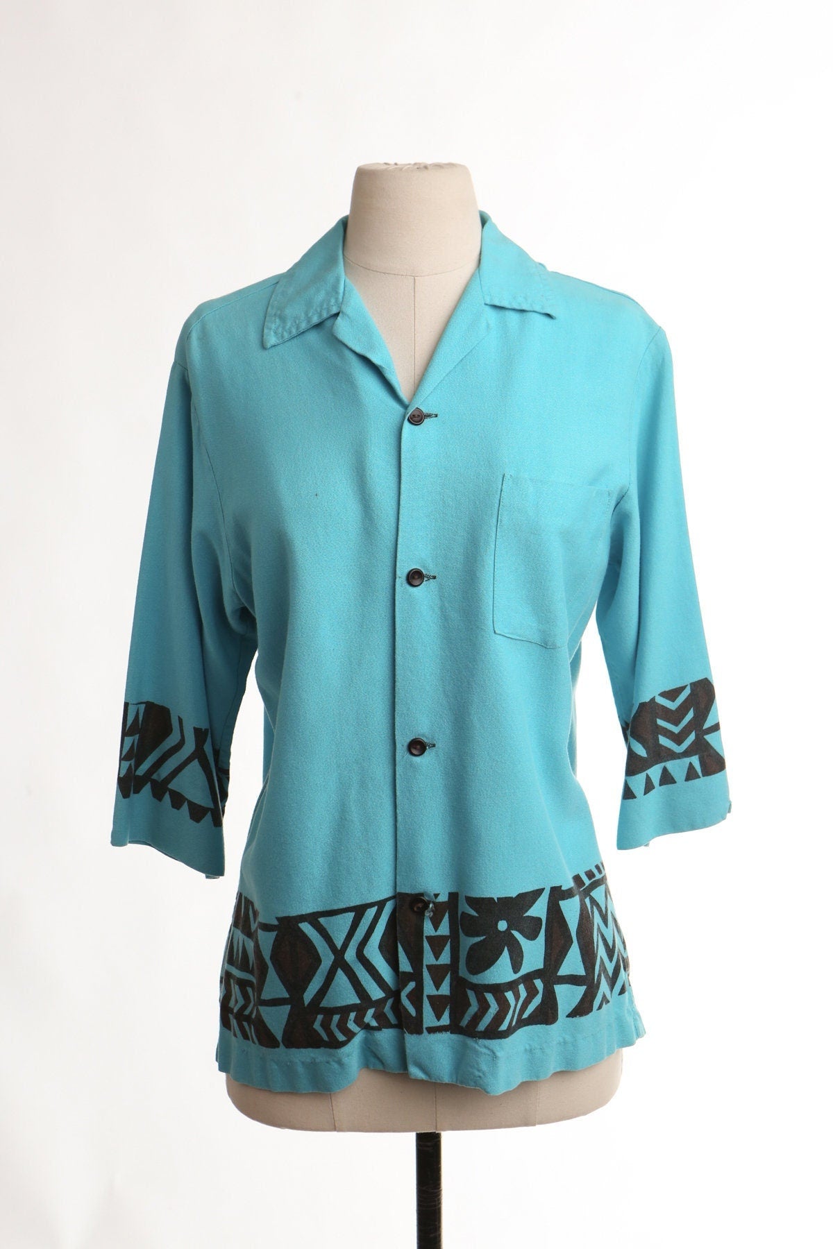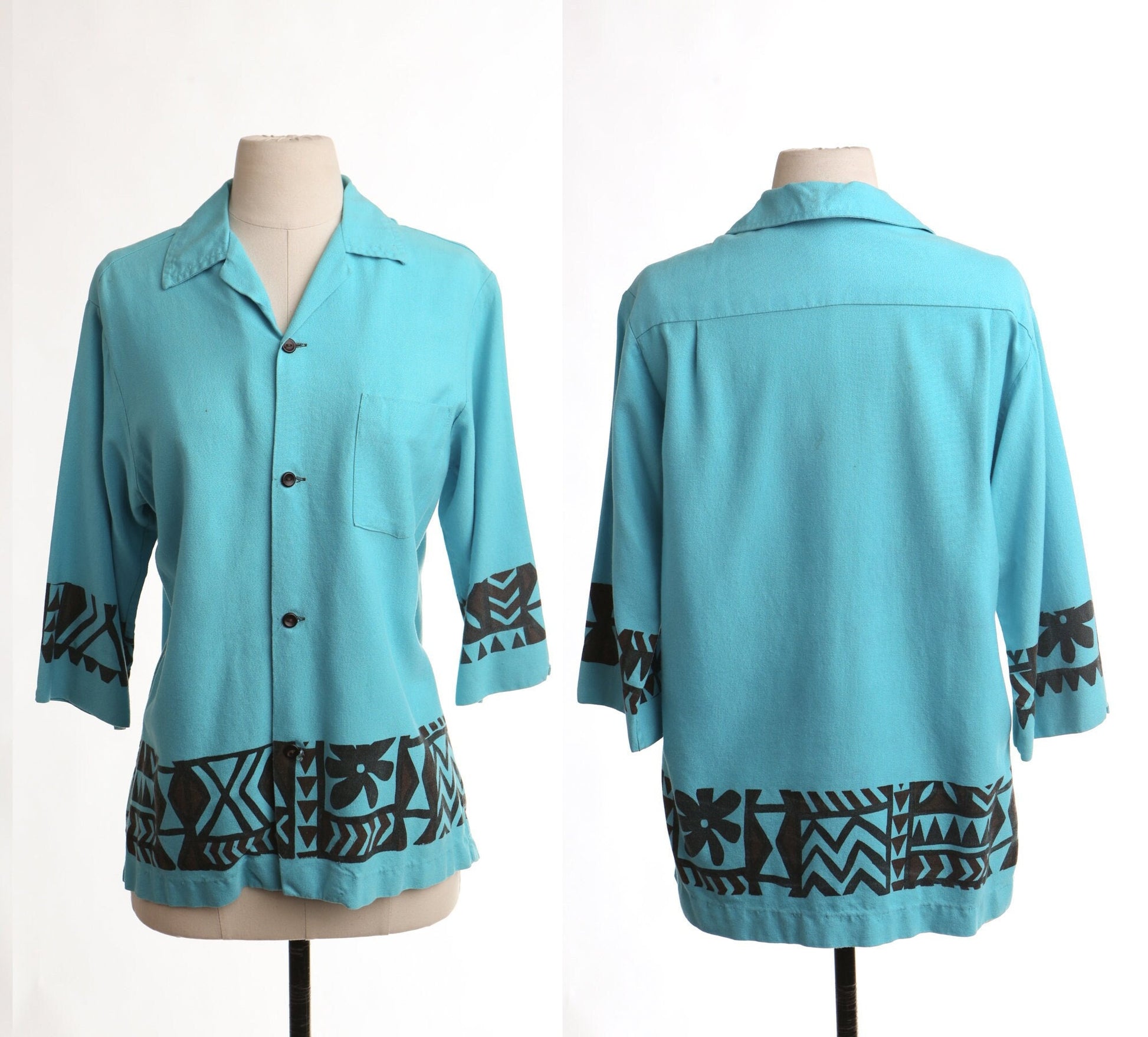Vintage hawaiian shirt surfing blue made in samoa graphic men tatto print