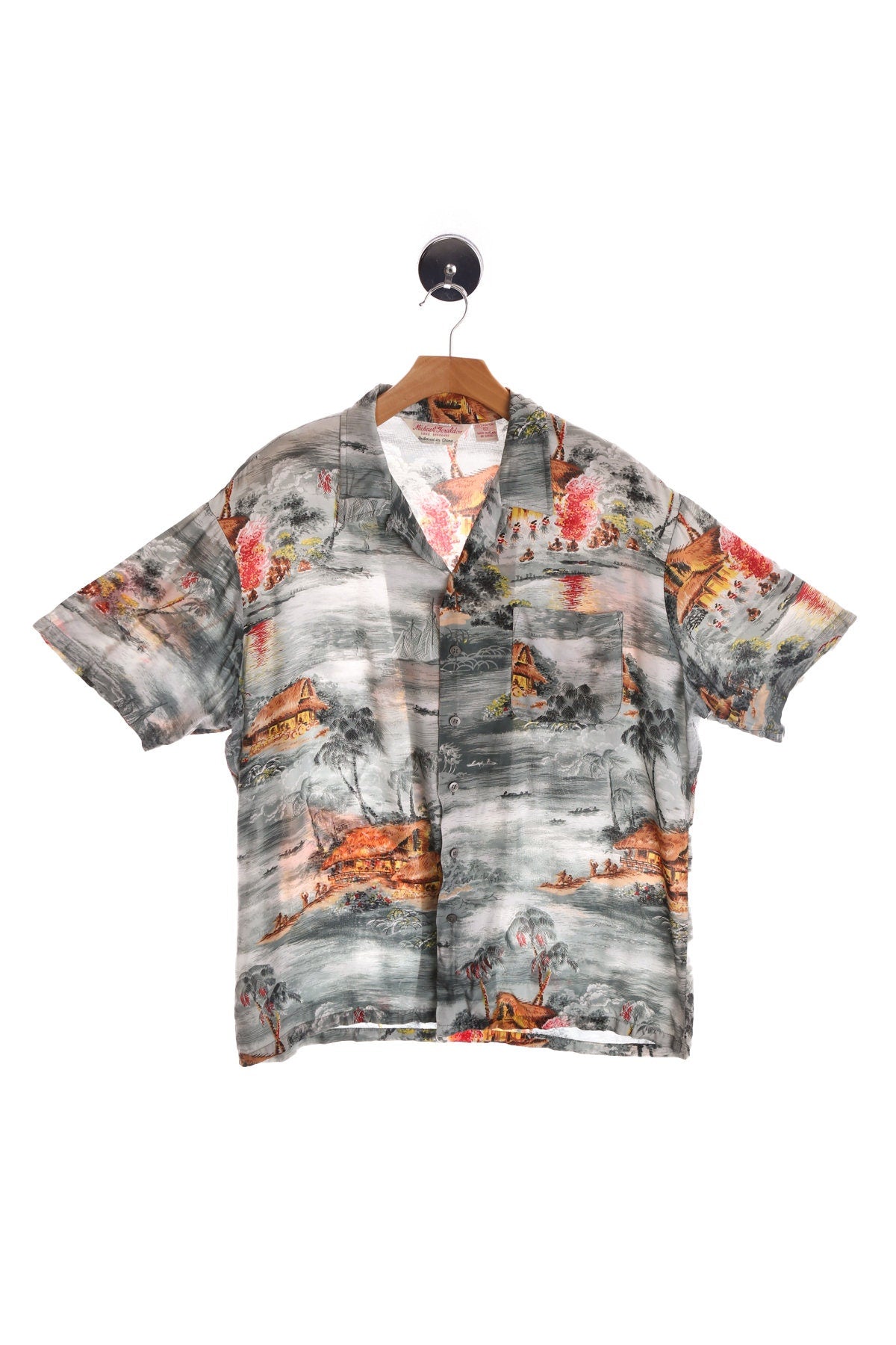 Vintage Hawaiian Shirt With Beach House Hand Screened Print