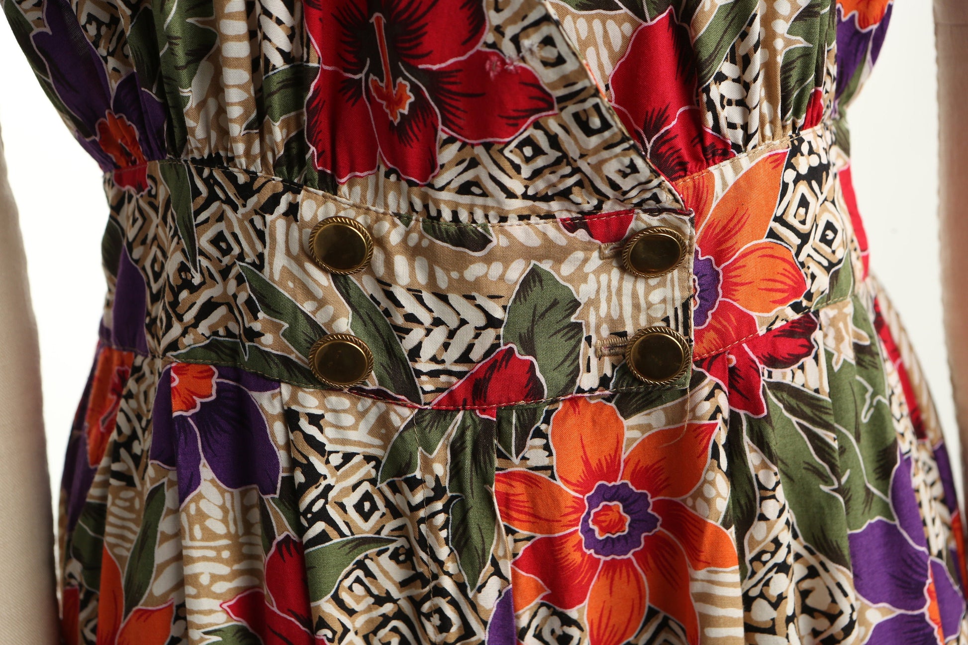 Vintage jumpsuit romper dress 90's floral print flower women v neck summer casual