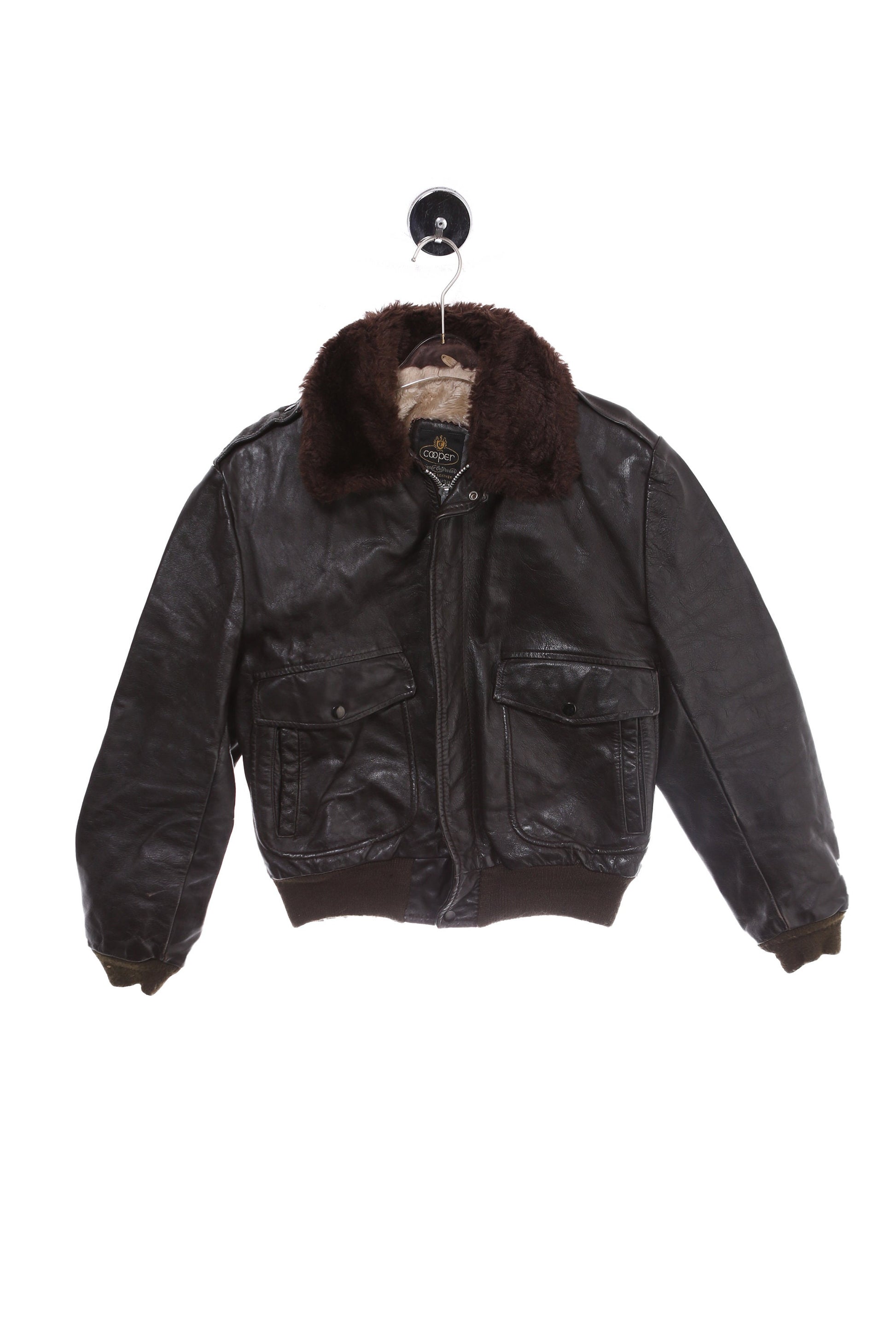 Vintage Leather Bomber Jacket by Cooper - Made in USA - Estimated Era 1970's - 1980's